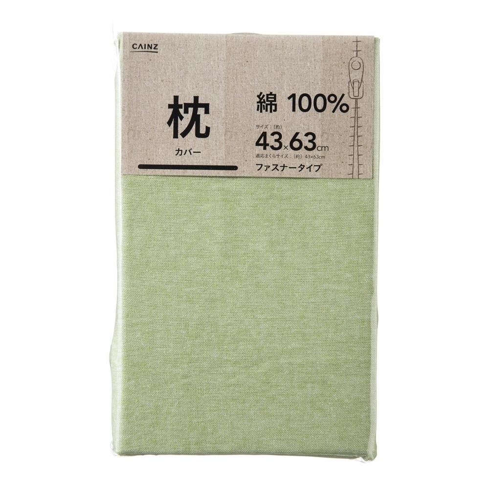 綿100% 枕カバー グリーン 43×63※カバーのみ