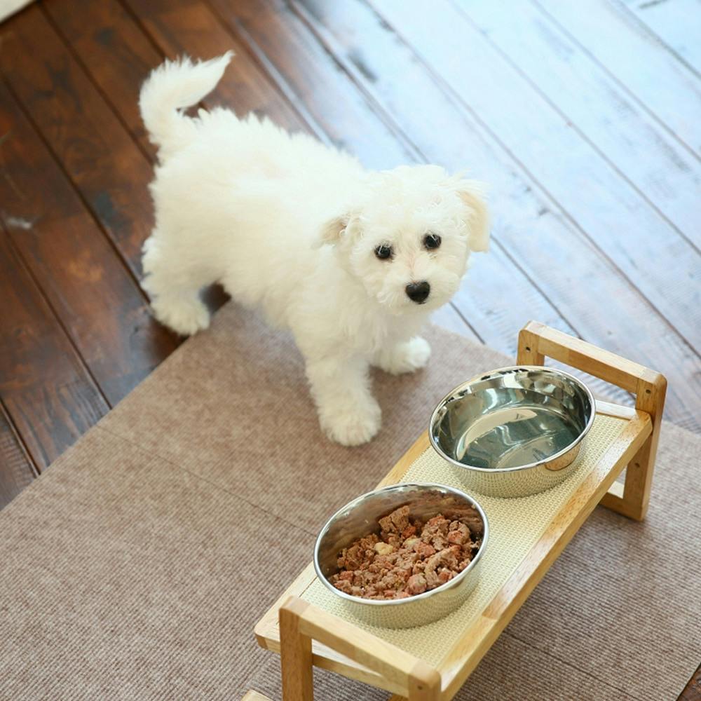 食器の位置を上げることで首や腰への負担を軽減します。テーブルに角度をつけることで食器の手前に水やフードが集まるため、より食べやすくなります。