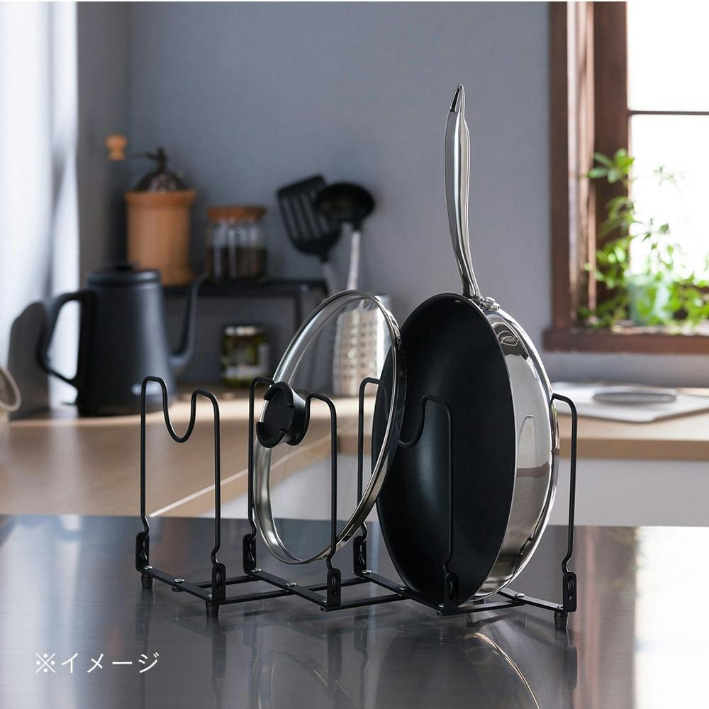 鍋・フライパン・ふた 伸縮スタンド ブラック