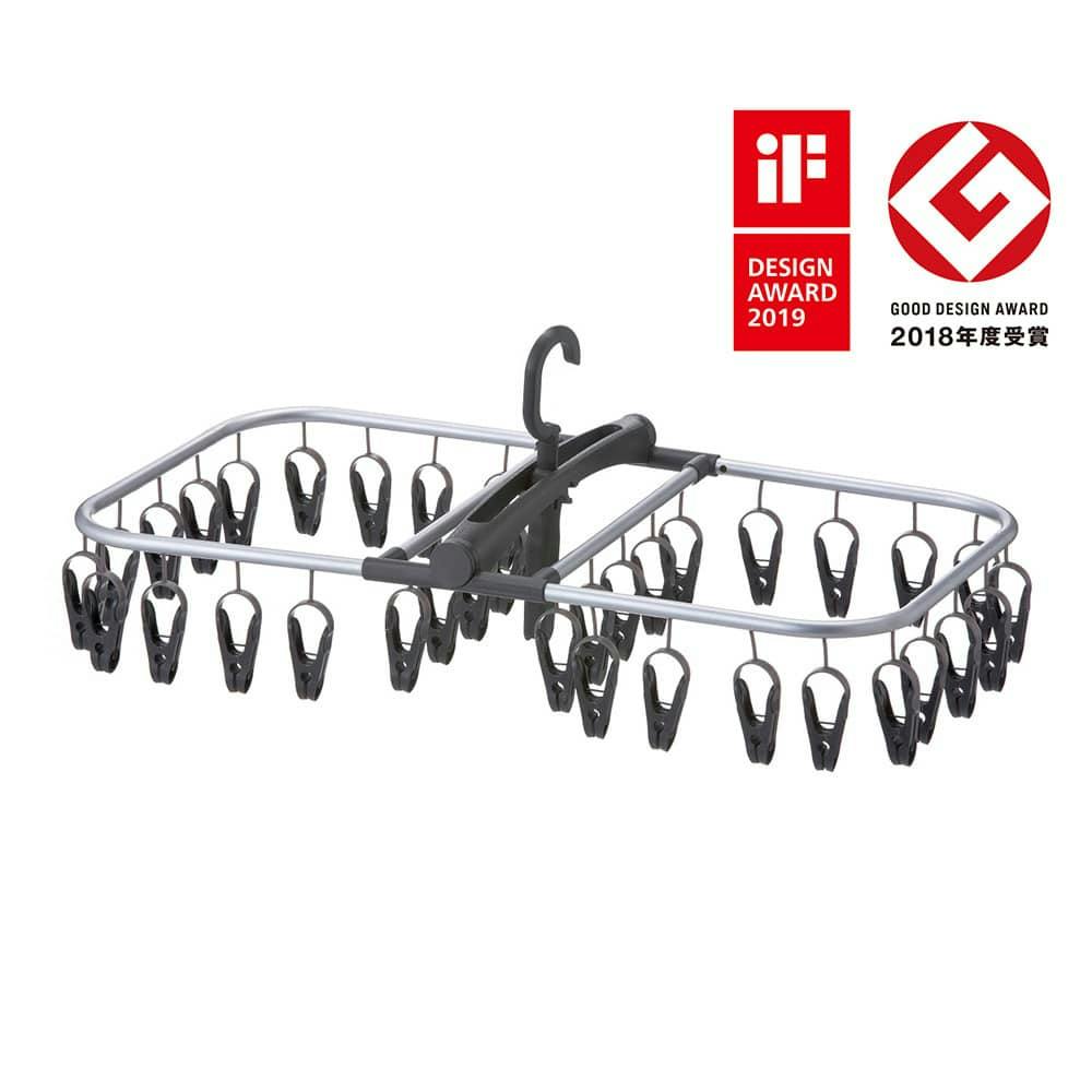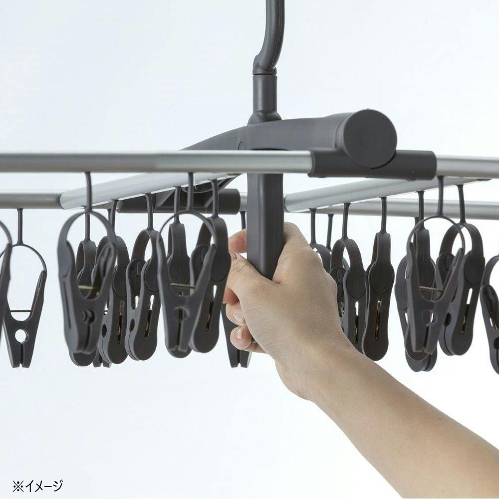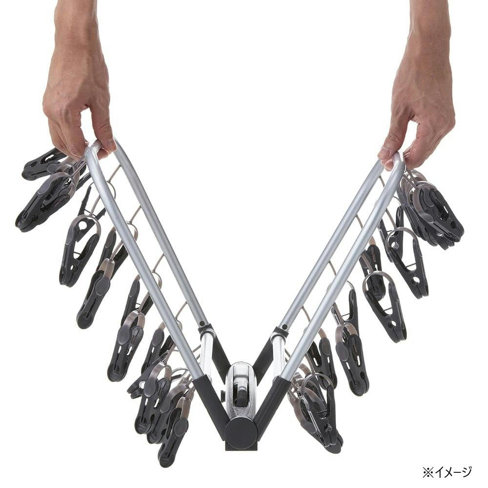 下から持てて干しやすい。ピンチがつまみやすく絡みにくい。軽くて丈夫なアルミフレーム。