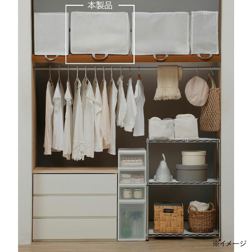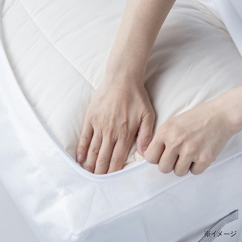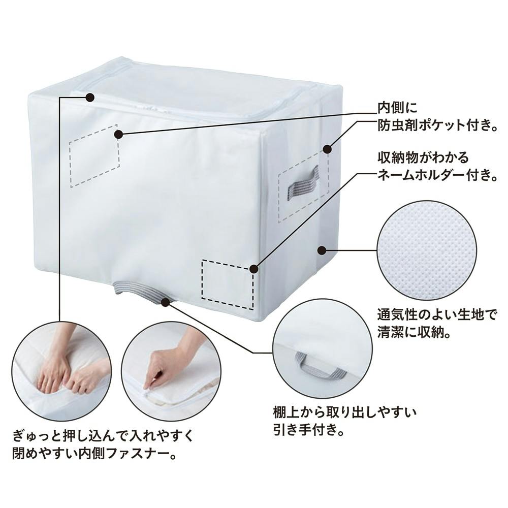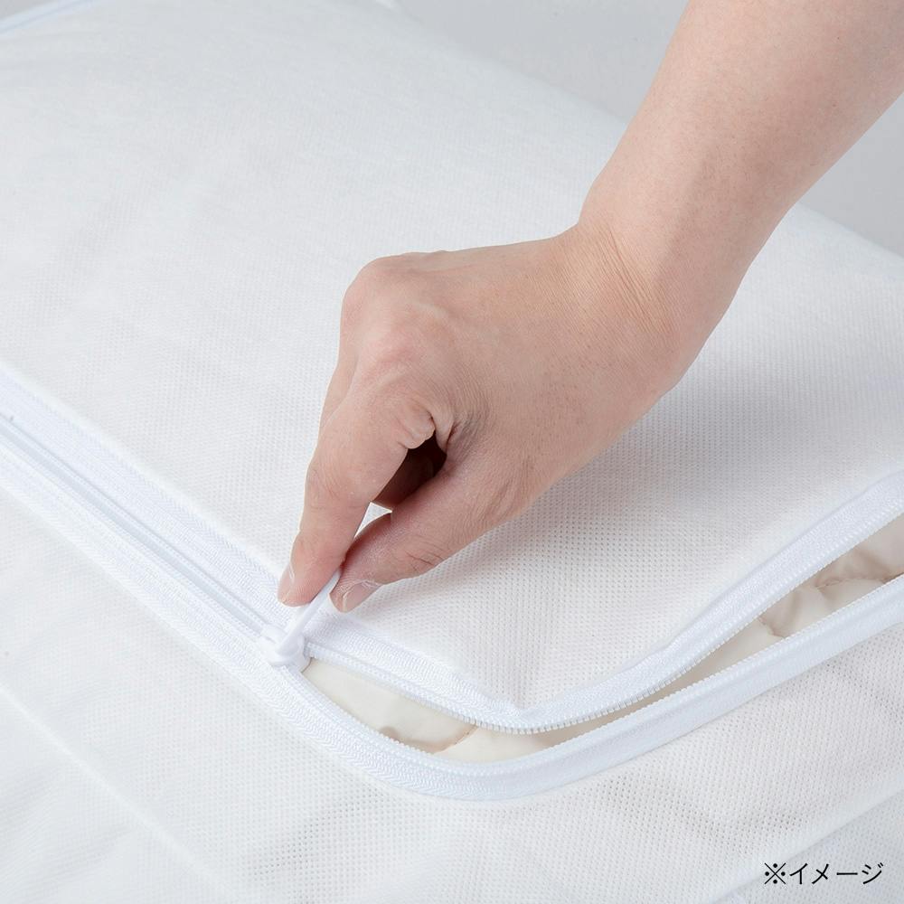 かさばるふとんを入れやすく、閉めやすい内側ファスナー。すっきり収納できて、取り出しやすい。