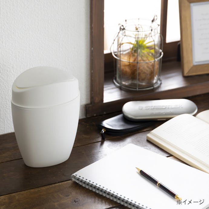 場所をとらないオーバルタイプの卓上ゴミ箱です。卓上のちょっとしたゴミを捨てることができます。キッチンやデスク、ドレッサーなど、さまざまな場面で役立ちます。