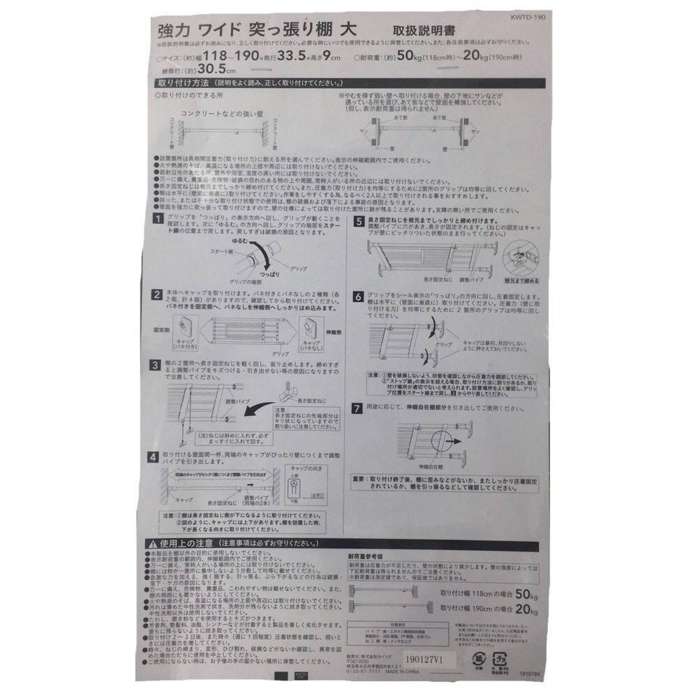 強力ワイド突っ張り棚 大 KWTD-190