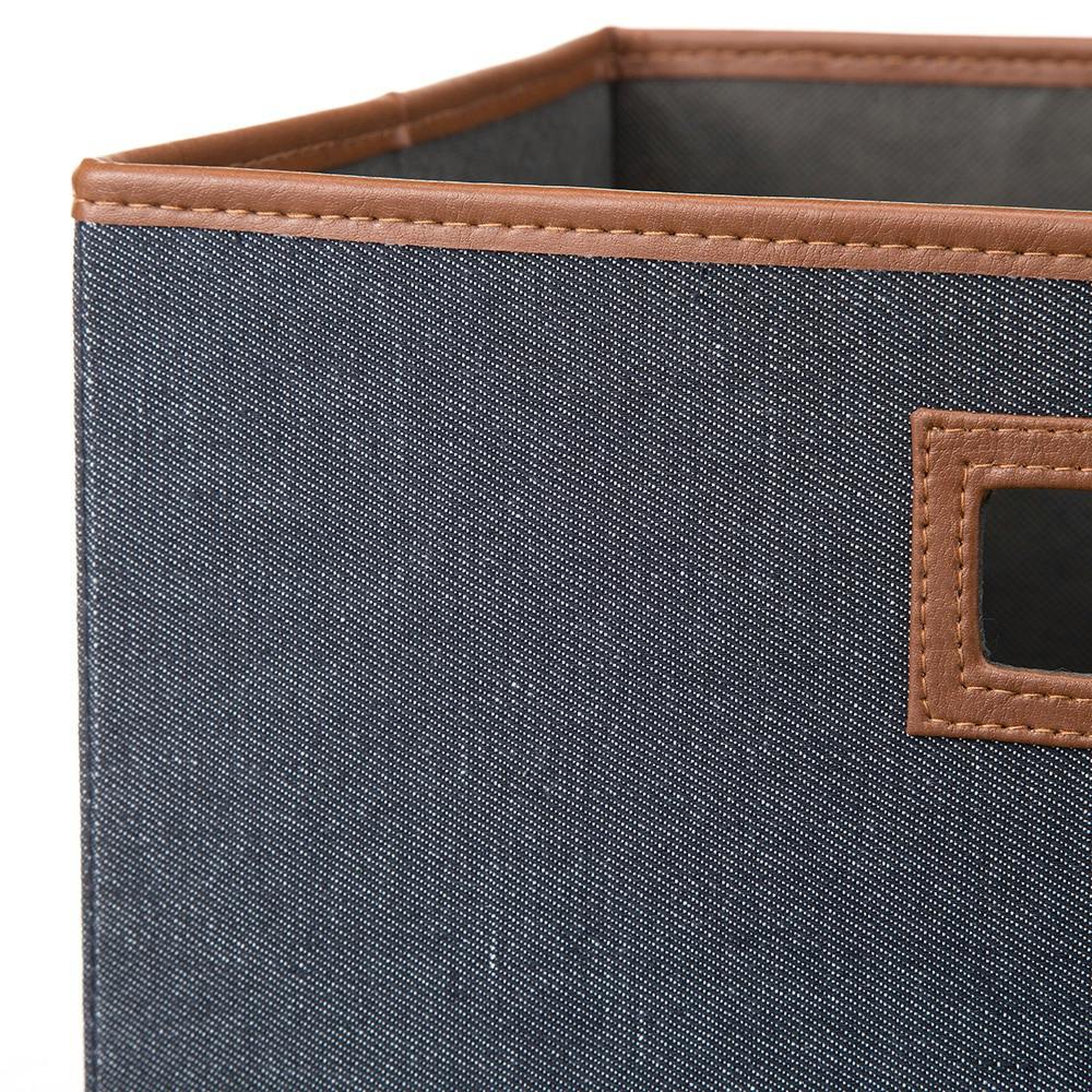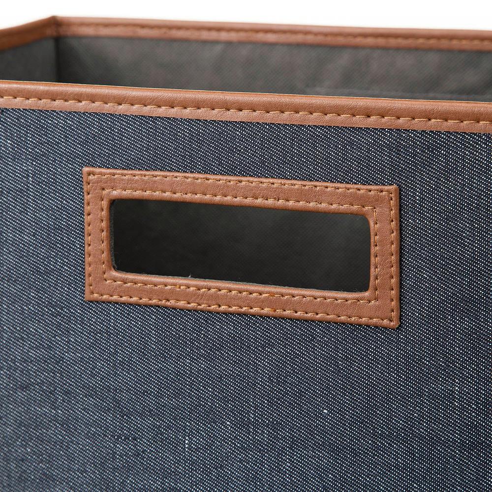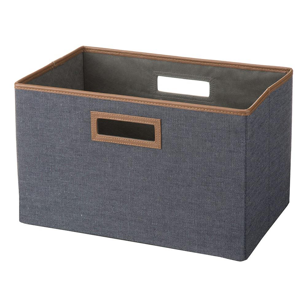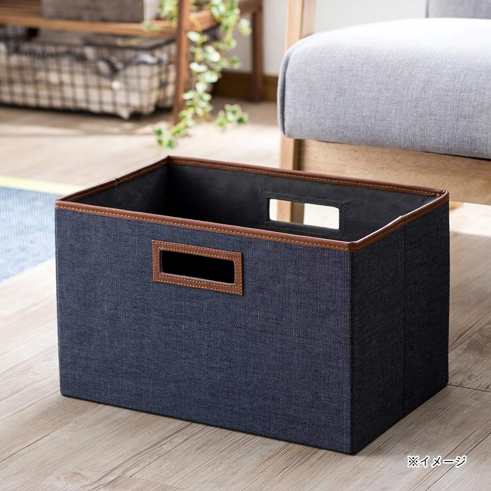 持ち運びしやすい折りたたみ収納ボックス デニム風ネイビー