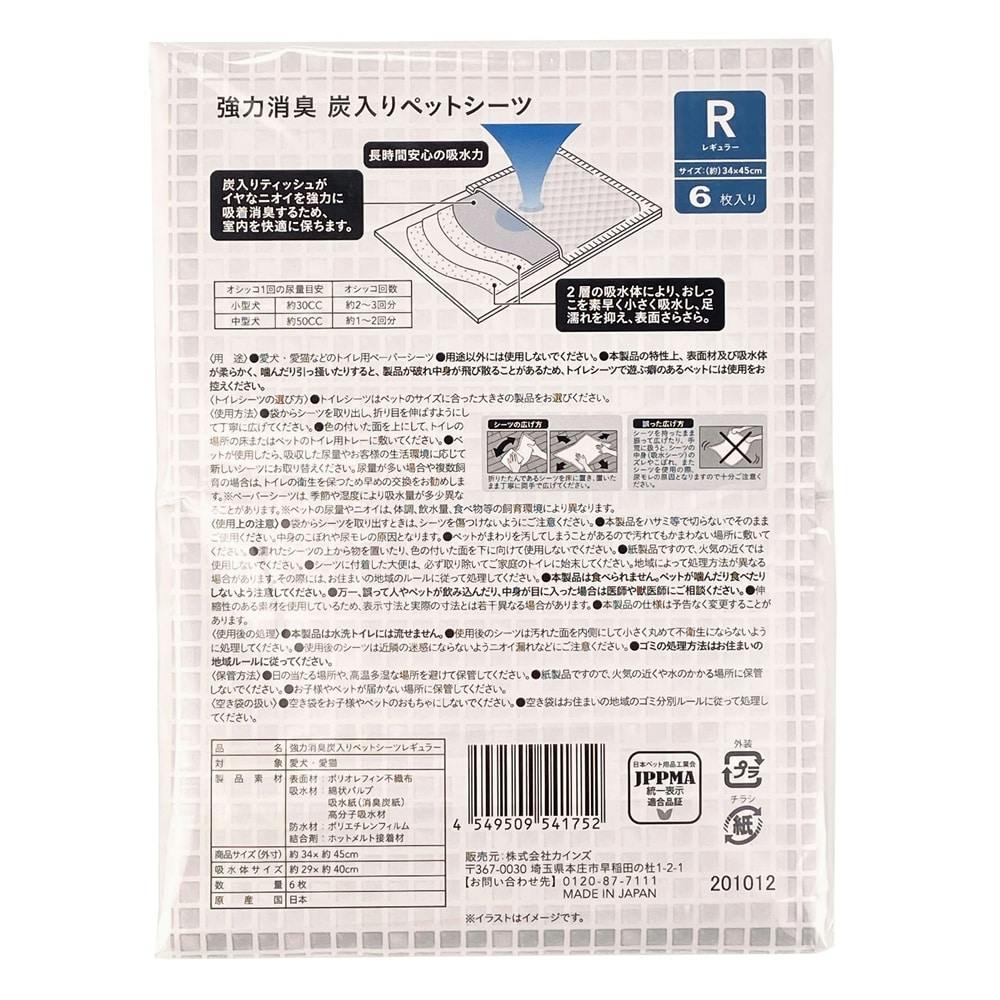 カインズ 強力消臭炭入りペットシーツ レギュラー お試し6枚 約34×44cm 小型犬約2~3回分 炭の消臭成分でニオイを強力に吸着・消臭