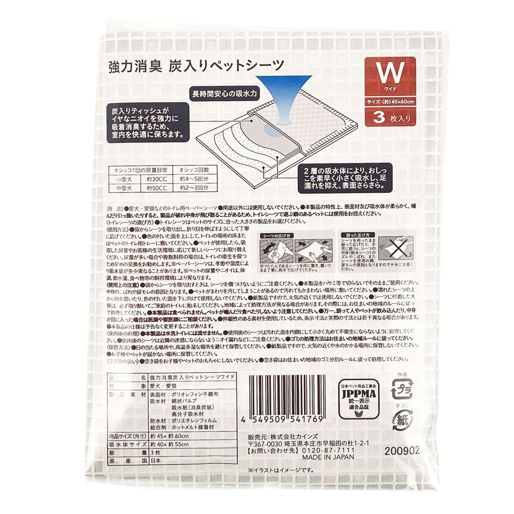 カインズ 強力消臭炭入りペットシーツ ワイド お試し3枚 約44×60cm 中型犬約2~3回分 炭の消臭成分でニオイを強力に吸着・消臭