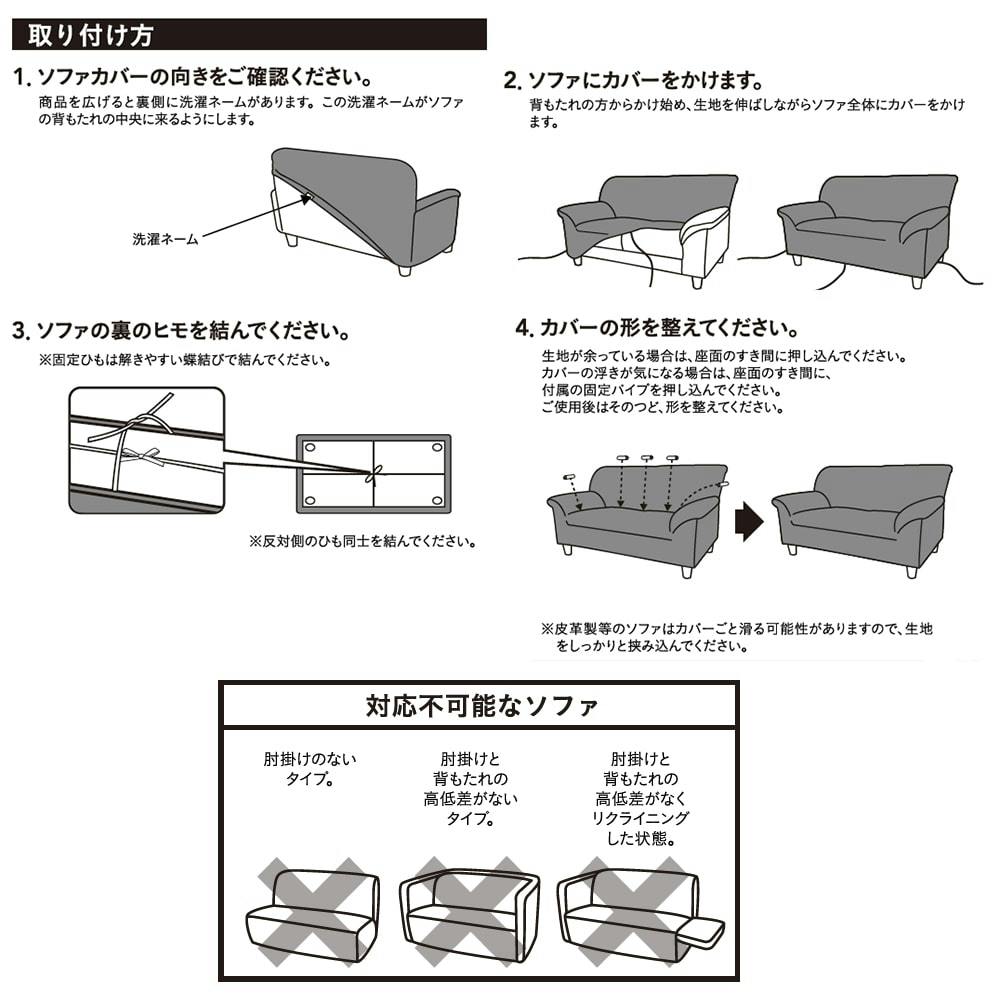 洗えるソファカバー レクト ネイビー 2人用※カバーのみ
