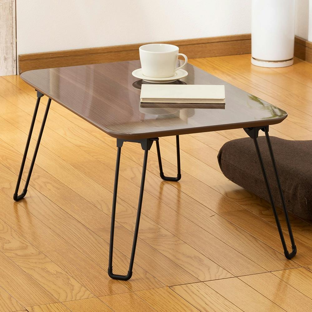 木目調鏡面折りたたみテーブル ブラウン 45×30cm T2