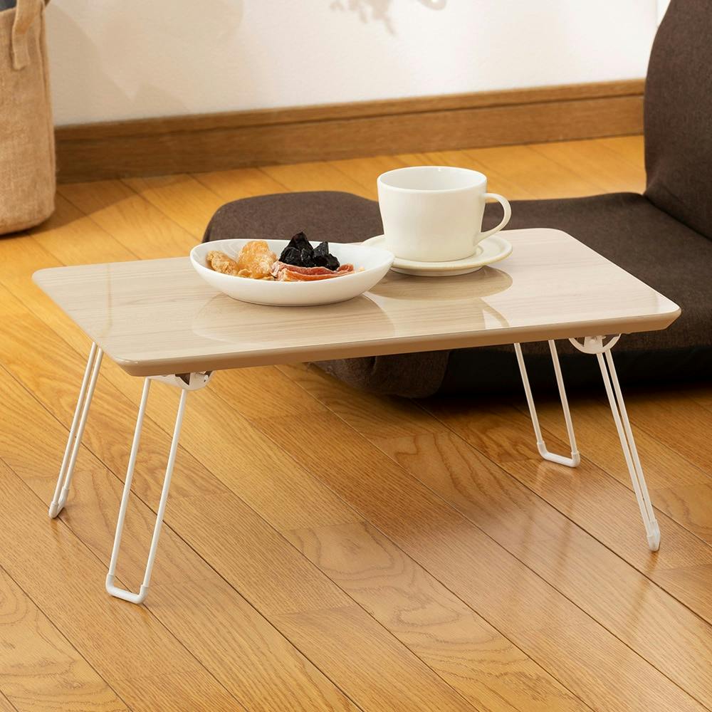 木目調鏡面折りたたみテーブル ナチュラル 60×40cm T3