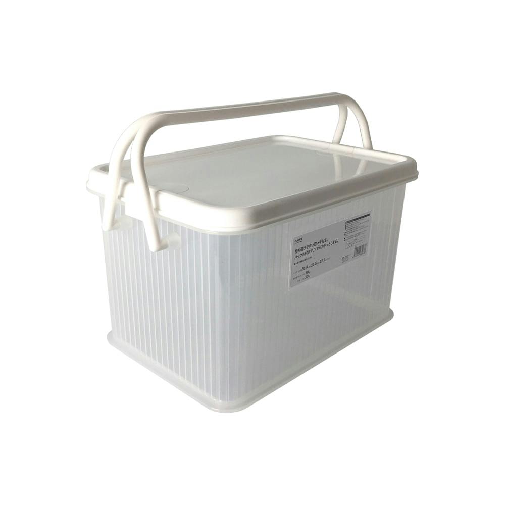 持ち運びやすい取っ手付き。バックル付きで、フタがカチッとしまる。