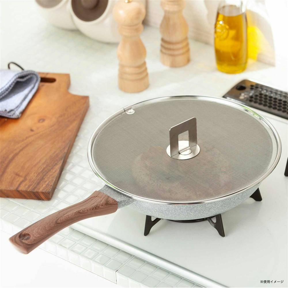 油の跳びはねカットに。折りたたみ式のツマミで収納に便利。