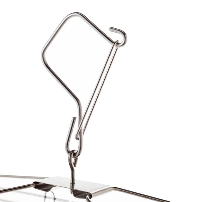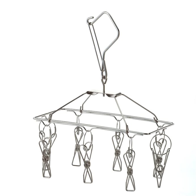 さびにくくて丈夫なステンレス製のピンチ付きのハンガーです。ピンチのつかむ部分を大きなリングで両吊りしているので、ピンチ同士が絡みにくい設計になっています。