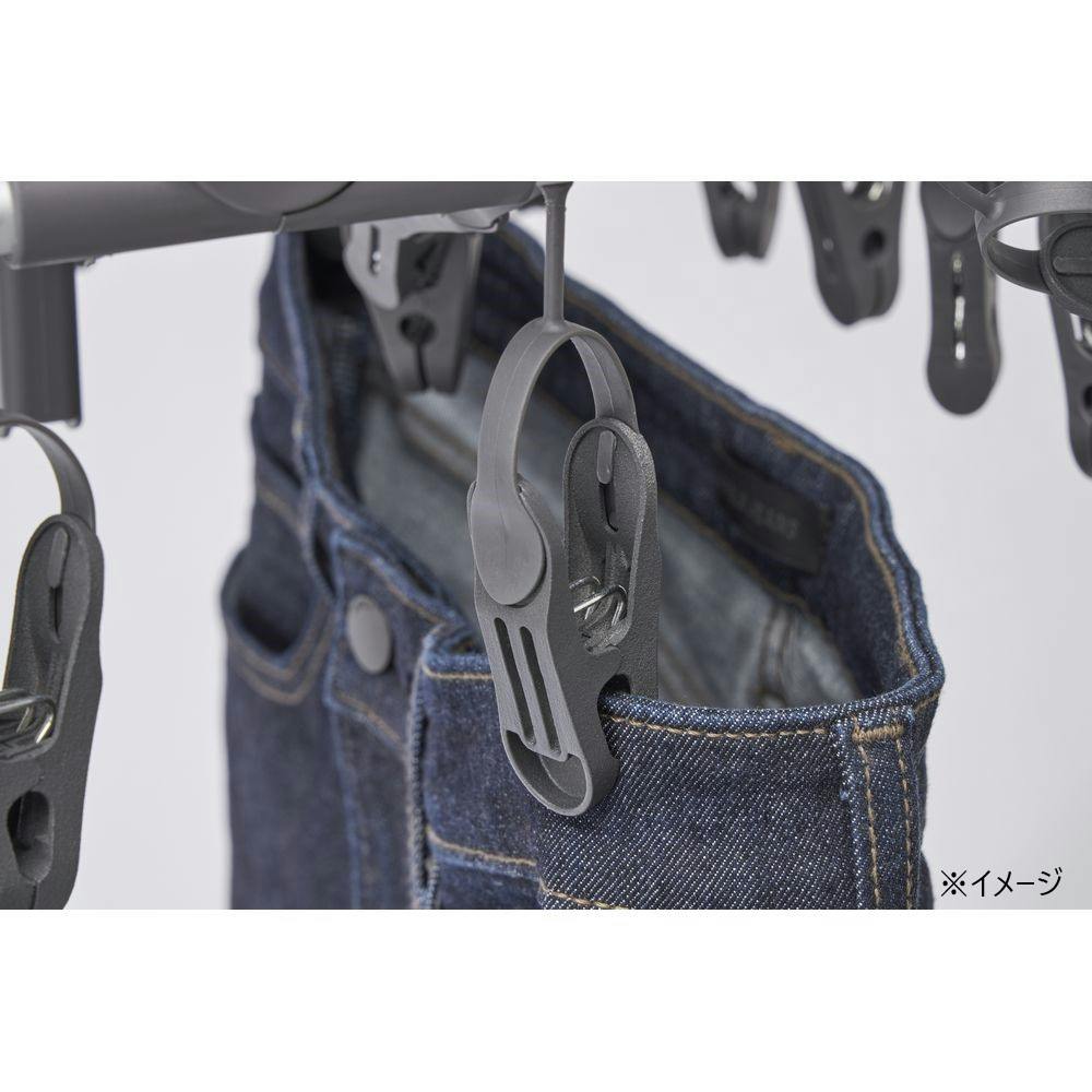 干す時傾かない補助フック付き、強力ピンチでジーパンをまとめて干せる