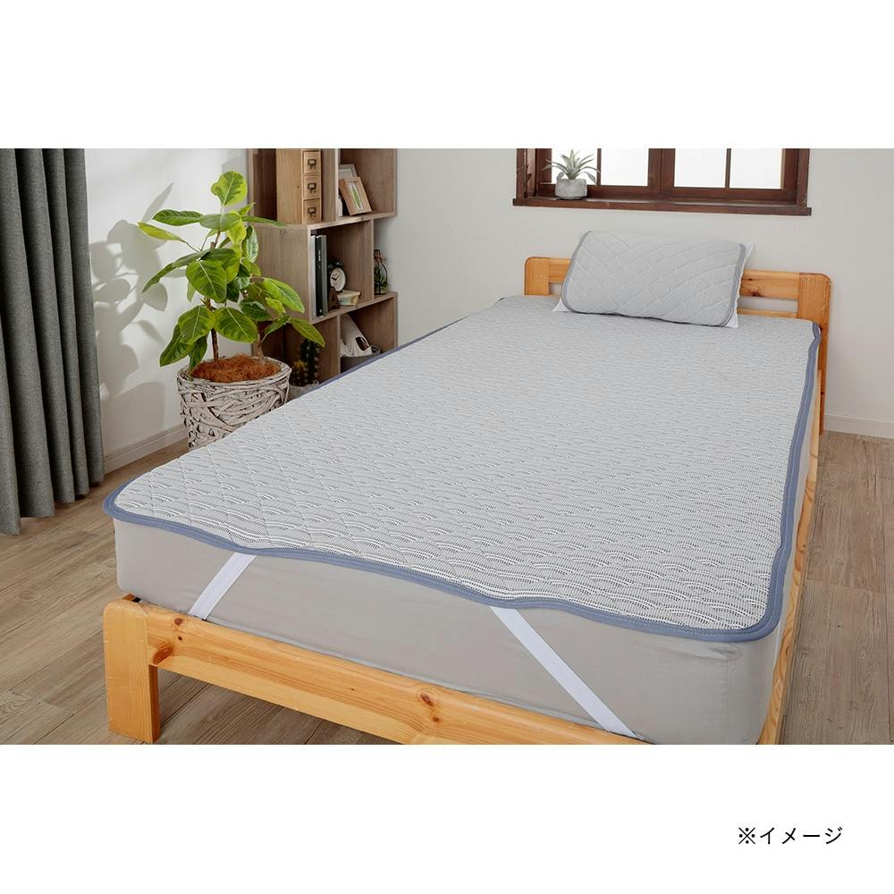 さらっとした肌触りのワッフル敷きパッド ブルー シングル 100×200cm