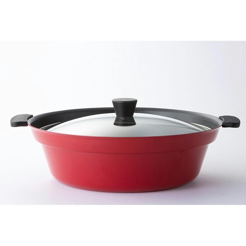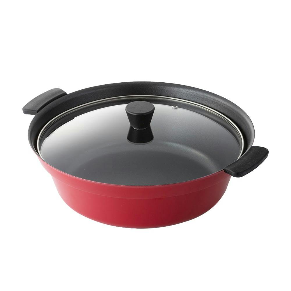 ふきこぼれしにくいアルミ卓上鍋27cm レッド