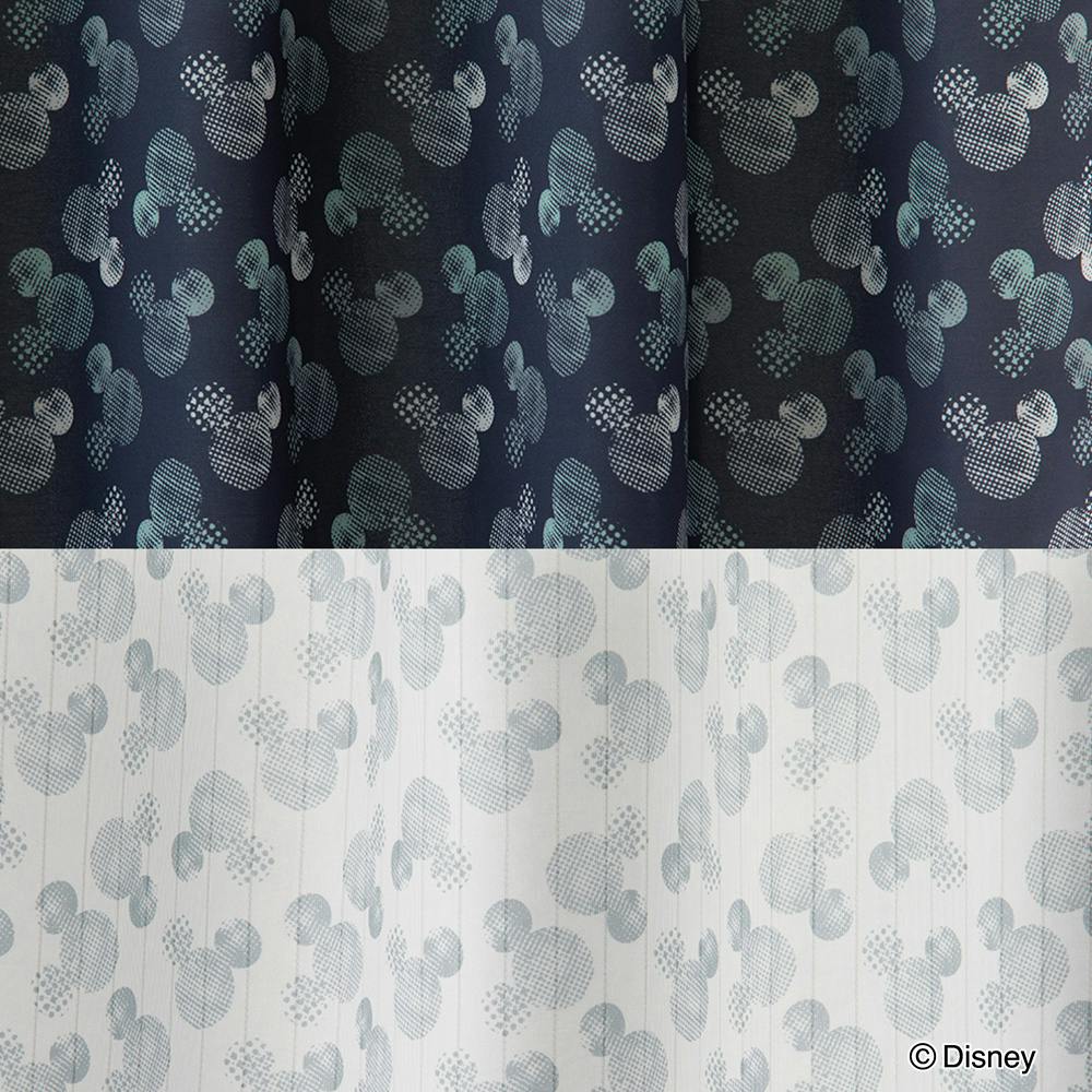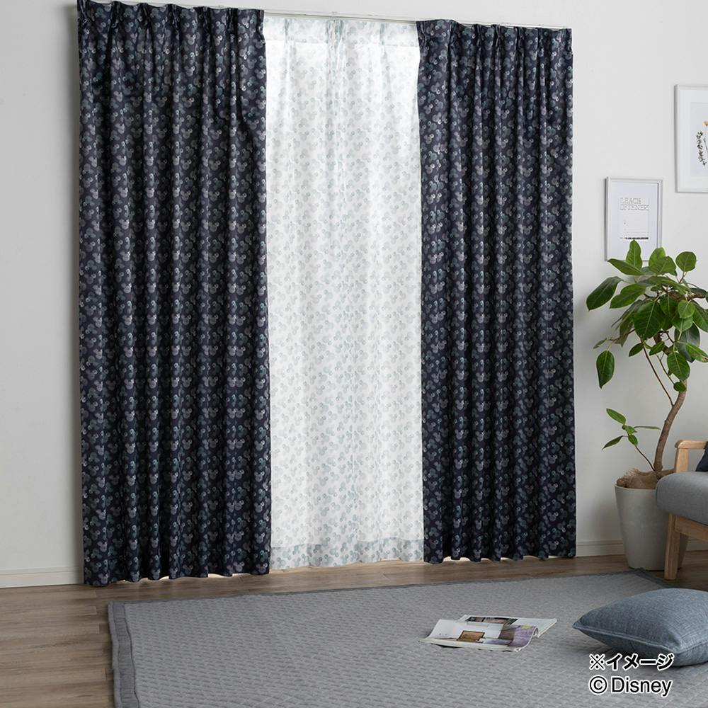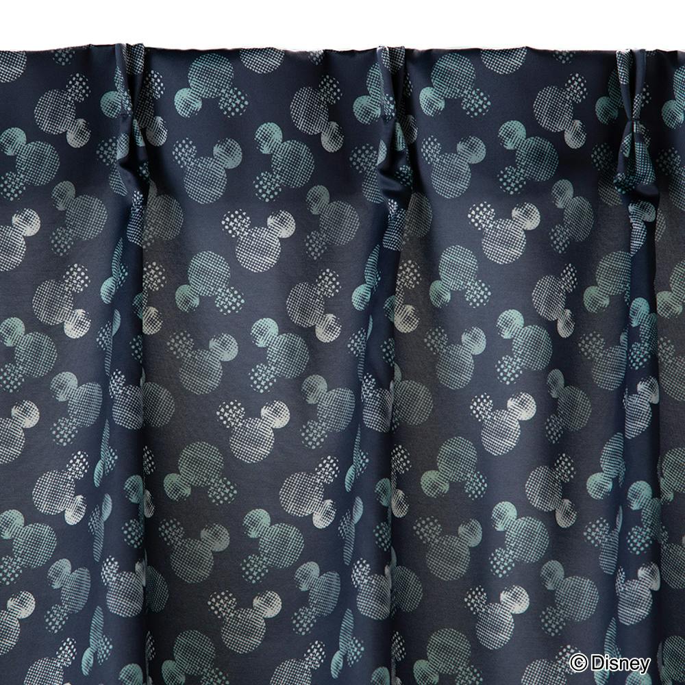 ディズニー 4枚組セットカーテン ミッキーマウス/ドット ネイビー 100×110cm 洗濯OK 形状記憶 遮光99.56% タッセル付 遮像レース