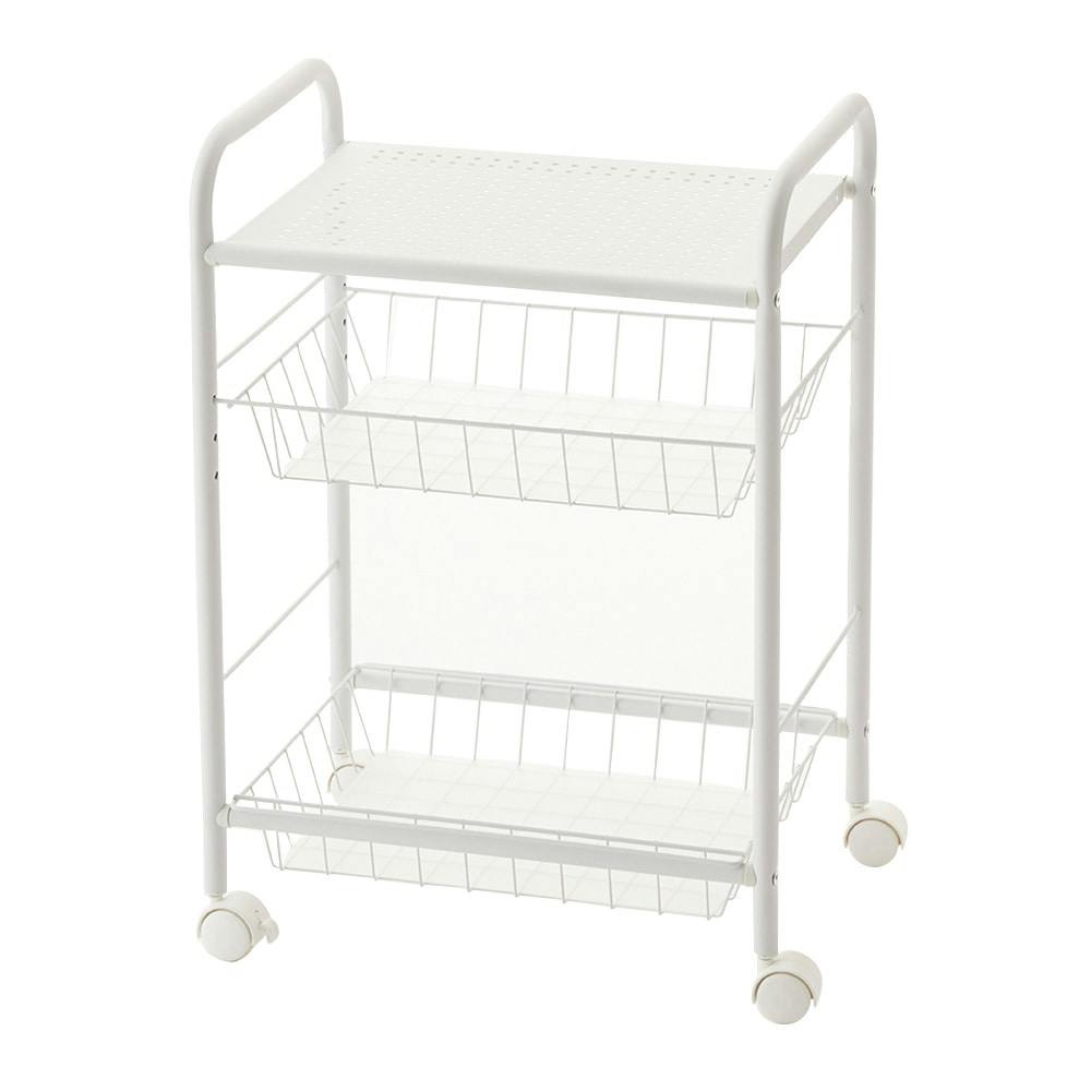 1.バスケットの高さを調整してペットボルト2Lも収納可能に。2.テーブル下にも格納できる本体高さ65cm設計