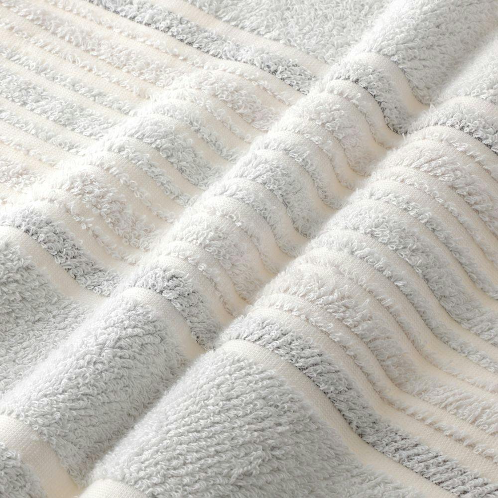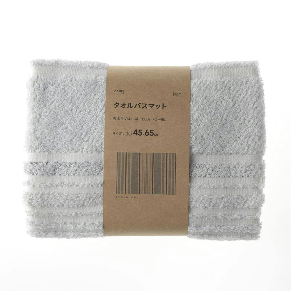 タオルバスマット ボーダー ライトグレー 45×65cm