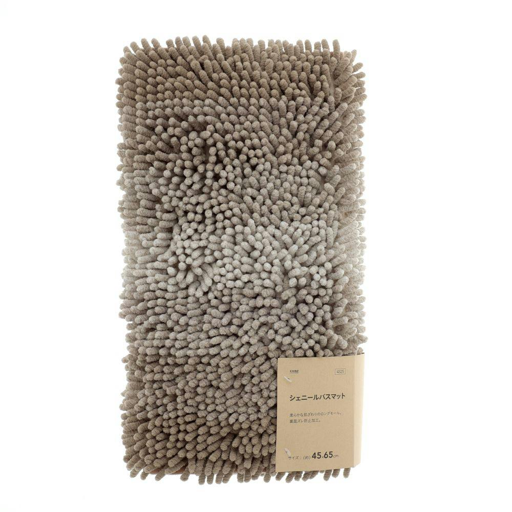 シェニールバスマット ボーダー ベージュ 45×65cm