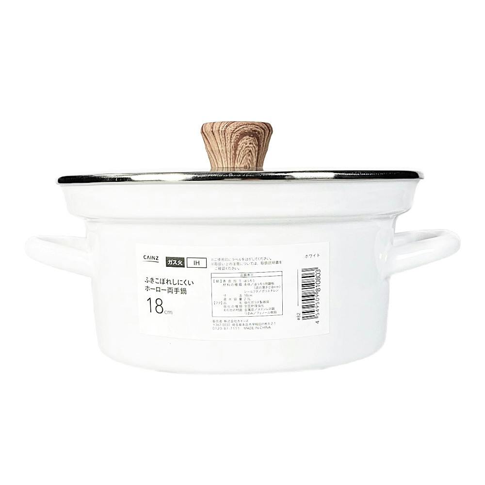ふきこぼれにくいホーロー両手鍋 18cm ホワイト