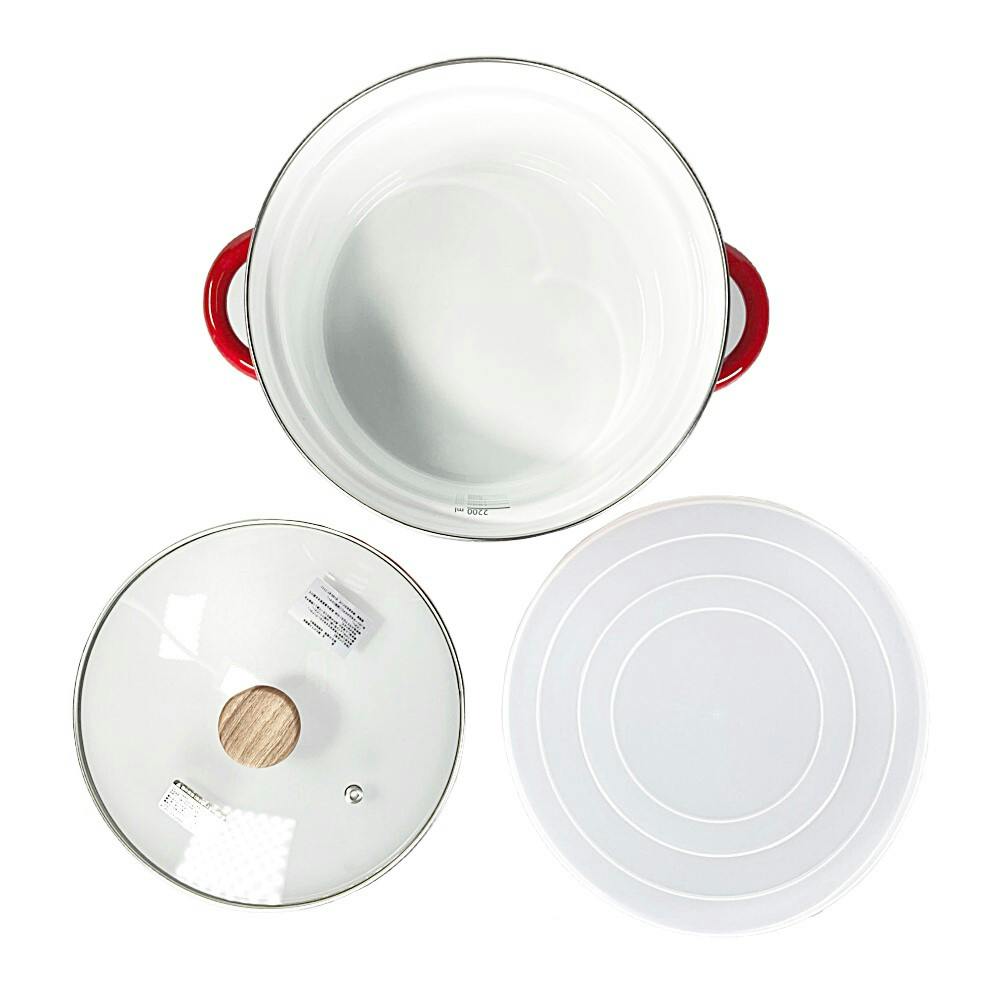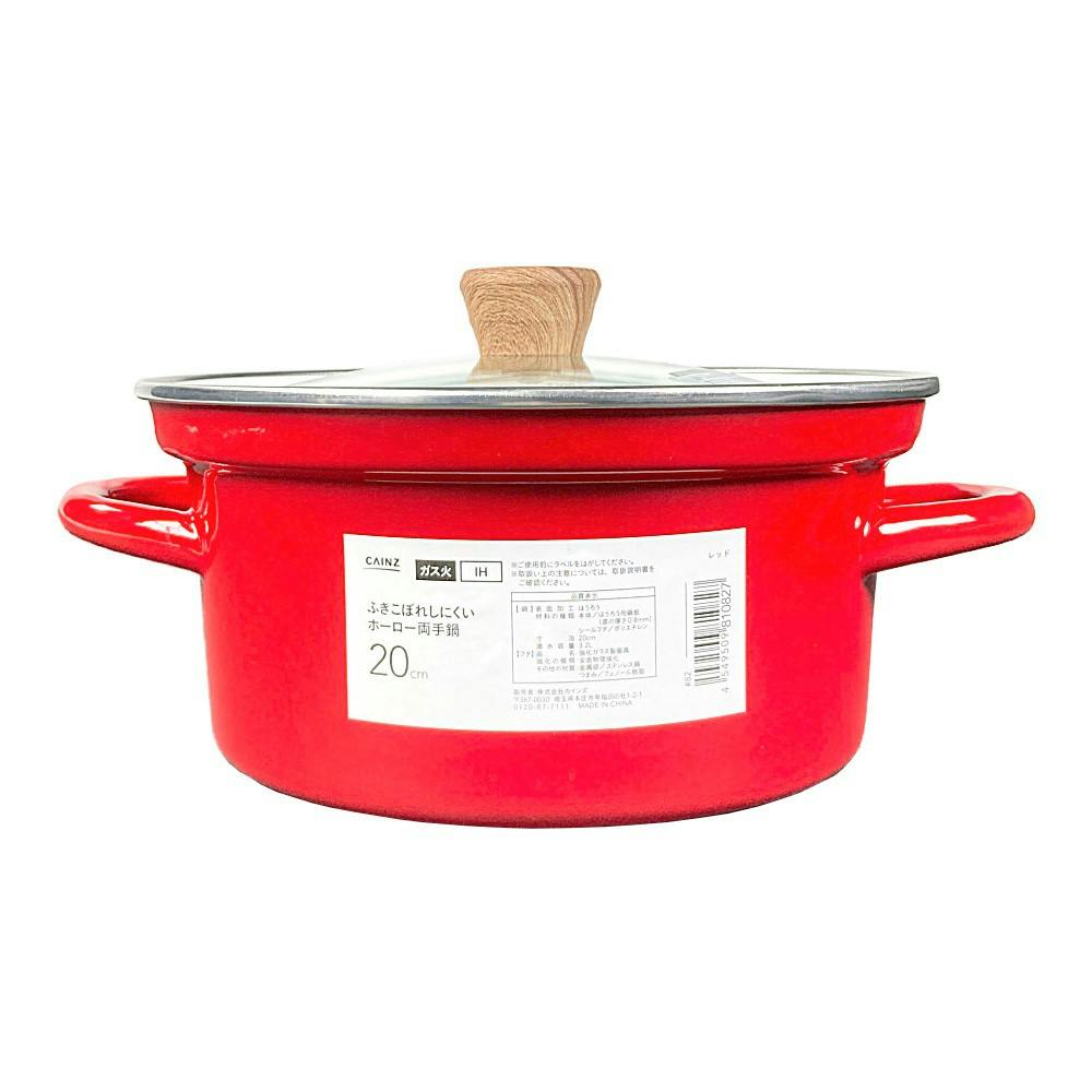 ふきこぼれにくいホーロー両手鍋 20cm レッド