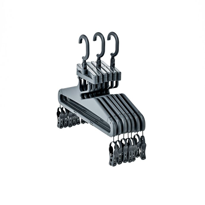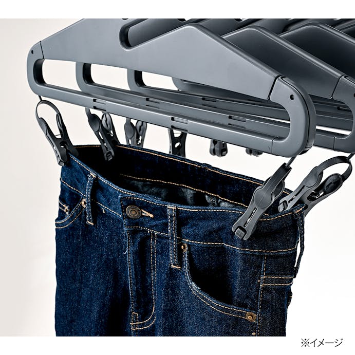 スペースが調整できるカインズオリジナル商品の洗濯ハンガーです。3本フックで安定して洗濯物を干すことができる機能や、ハンガー部分に洗濯ピンチがついているので、どの衣類にも使えるのがポイントです。さらに、奥行きや幅が調節出来るので、狭いスペースでも洗濯乾燥ができます。
