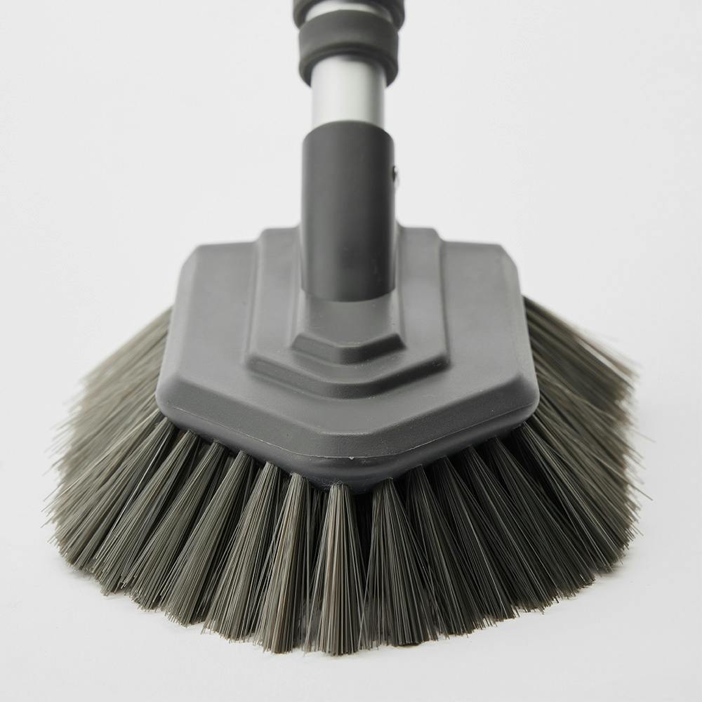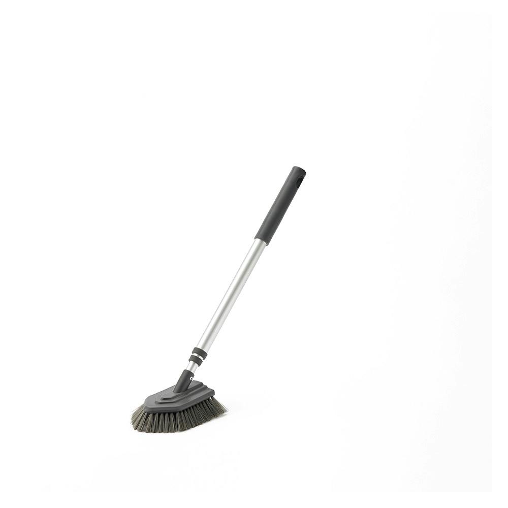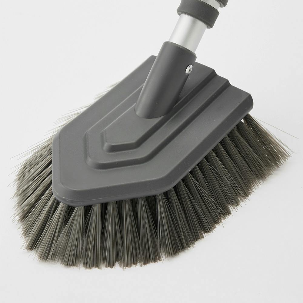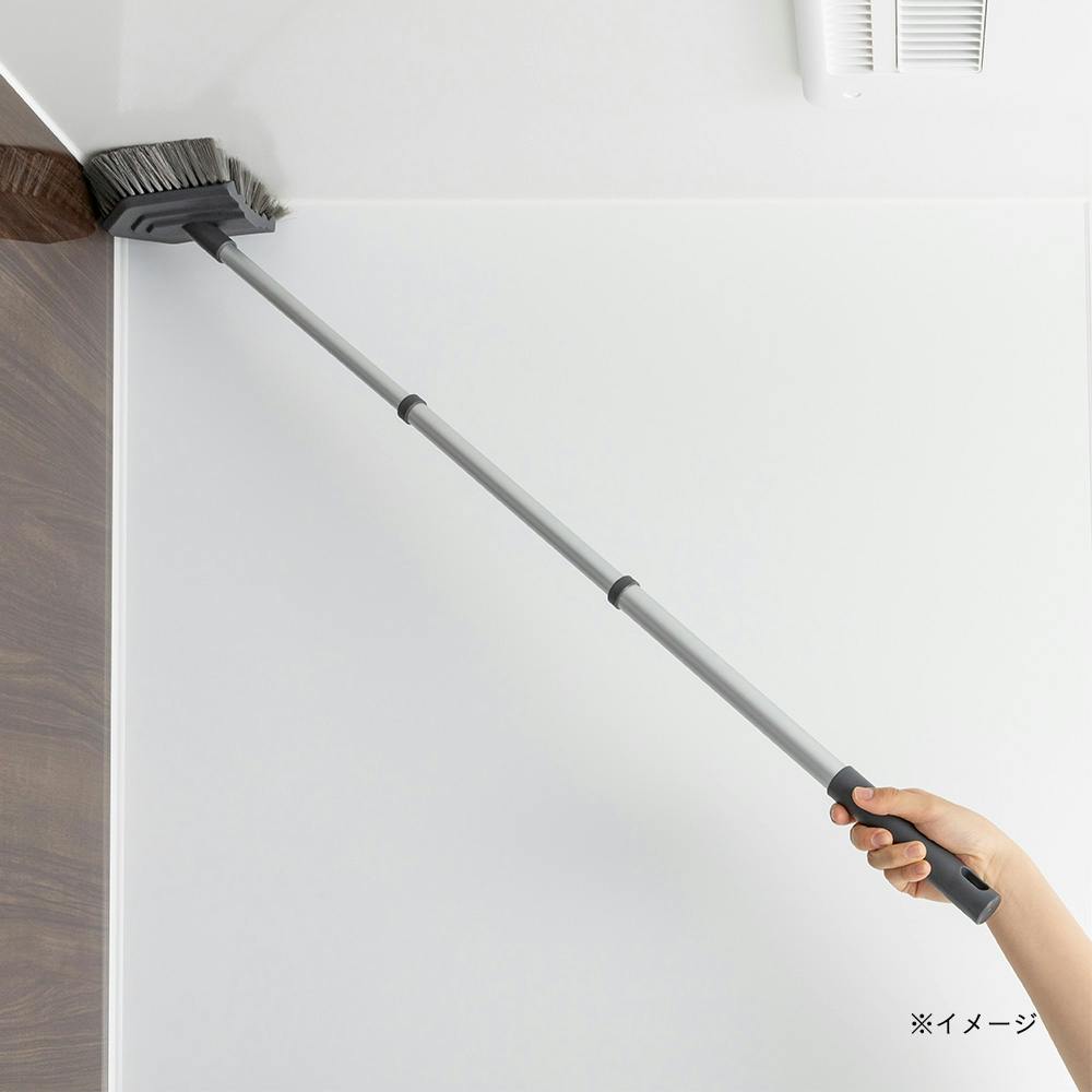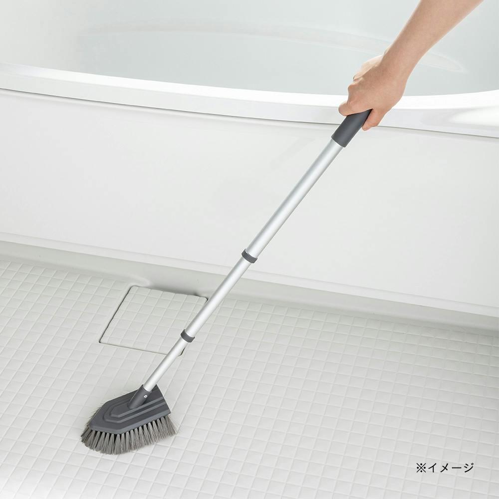 ブラシ毛が細く力が入れやすい植毛パターンで、浴室の床掃除がラクにできる。伸縮式で、天井や床、カウンター下など掃除しにくかった場所もラクに掃除ができる。