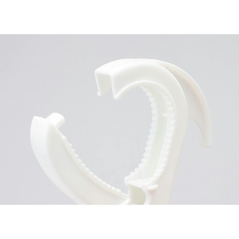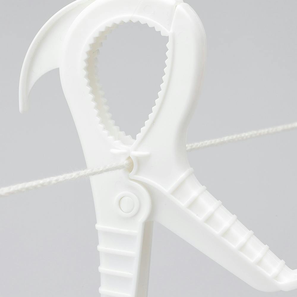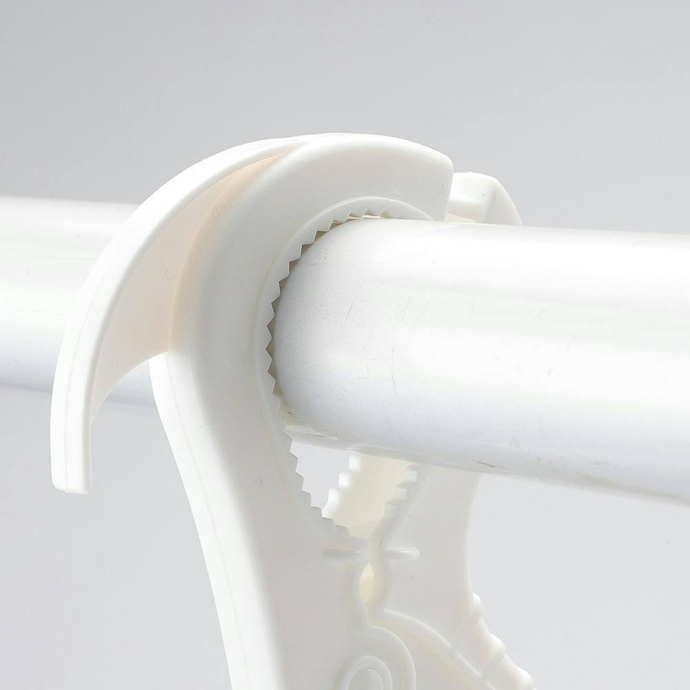 ●干す時のフレームの反りを抑えるために中心を壁で補強した構造。●竿をしっかりキャッチ。鴨居フック・ロープ掛けの二つの機能で室内干しも対応。