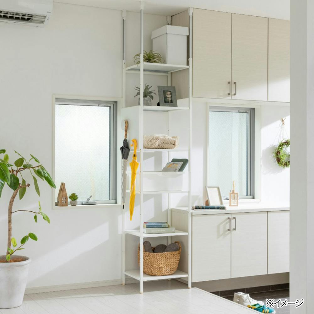 追加フレームセットと棚板を本体に追加すれば、使い方やスペースに合わせた自分仕様のシェルフを作ることができる