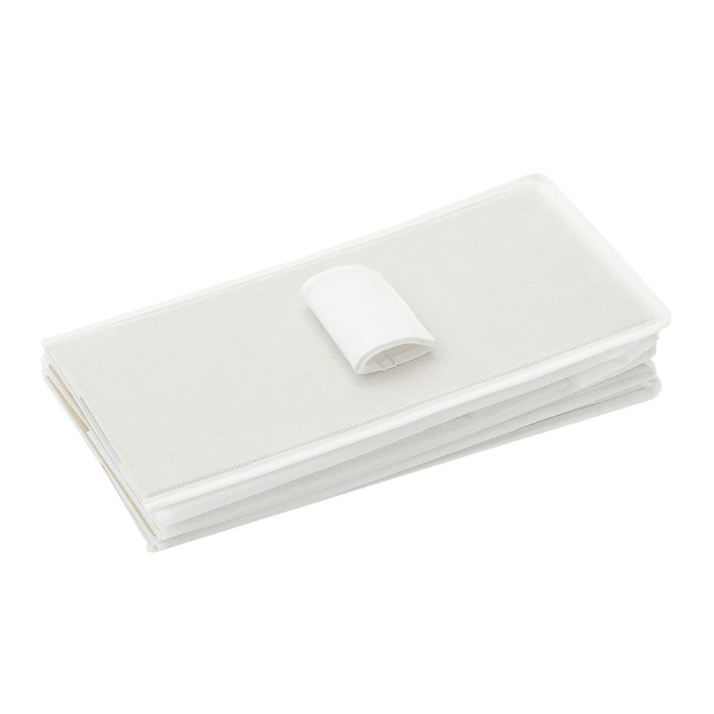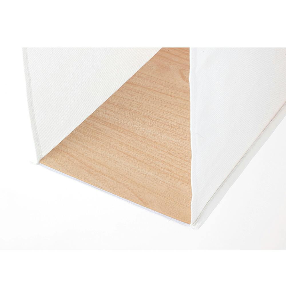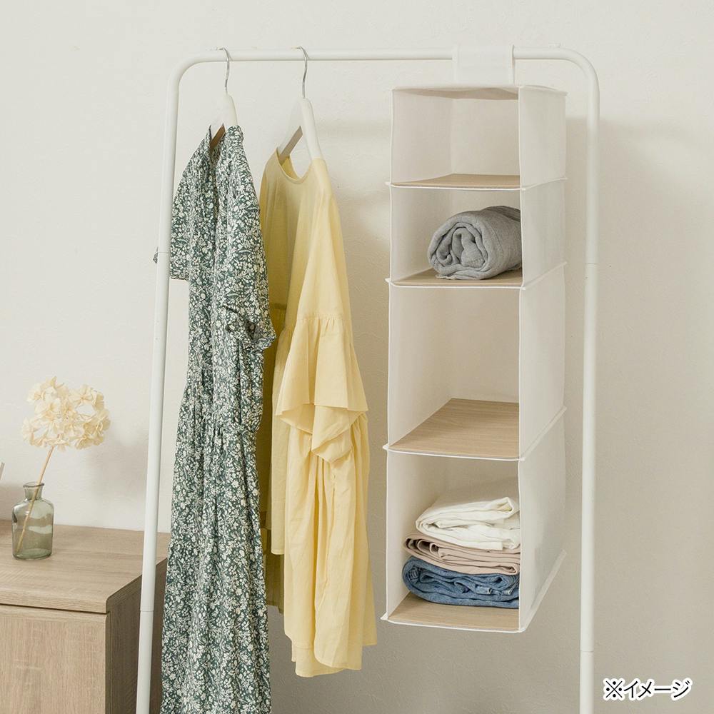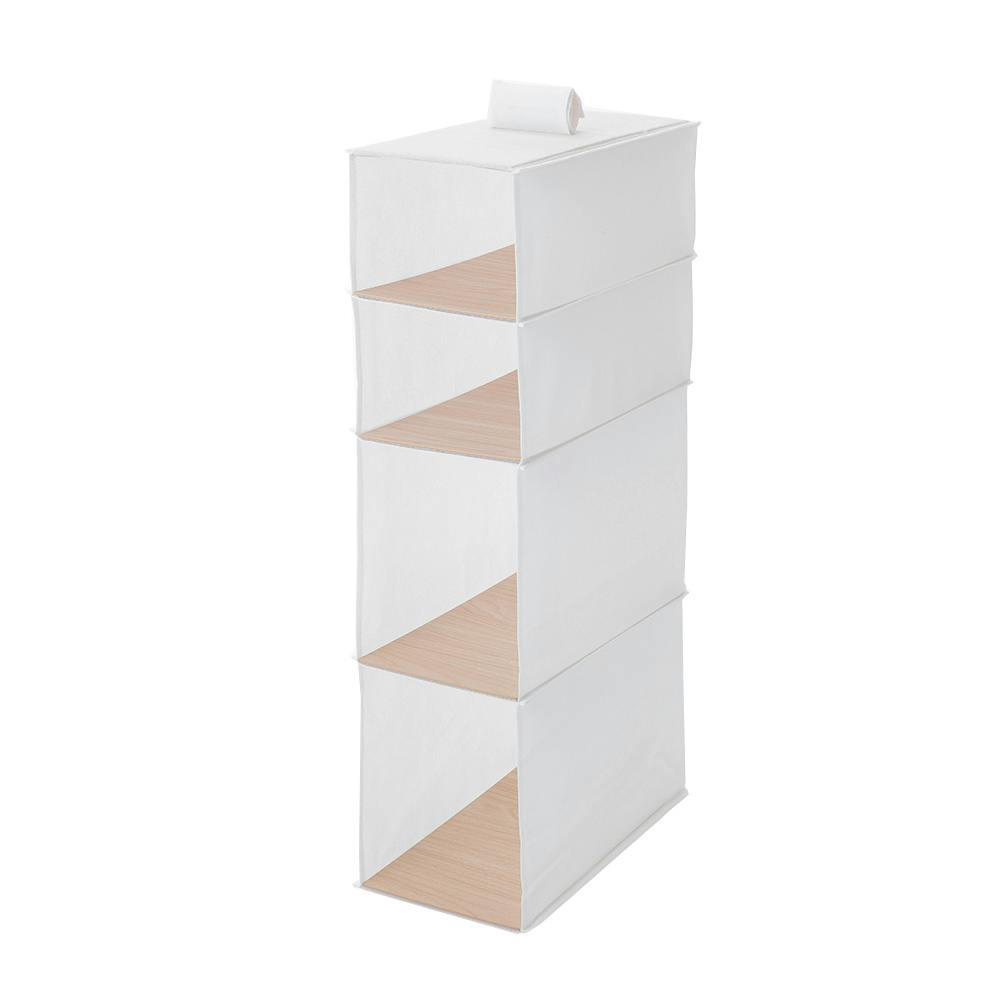 各段に板があるので歪みが少なく出し入れしやすい。上2段は浅く、下2段は深さがあるので入れるものに合わせて選べる。通気性のある生地。