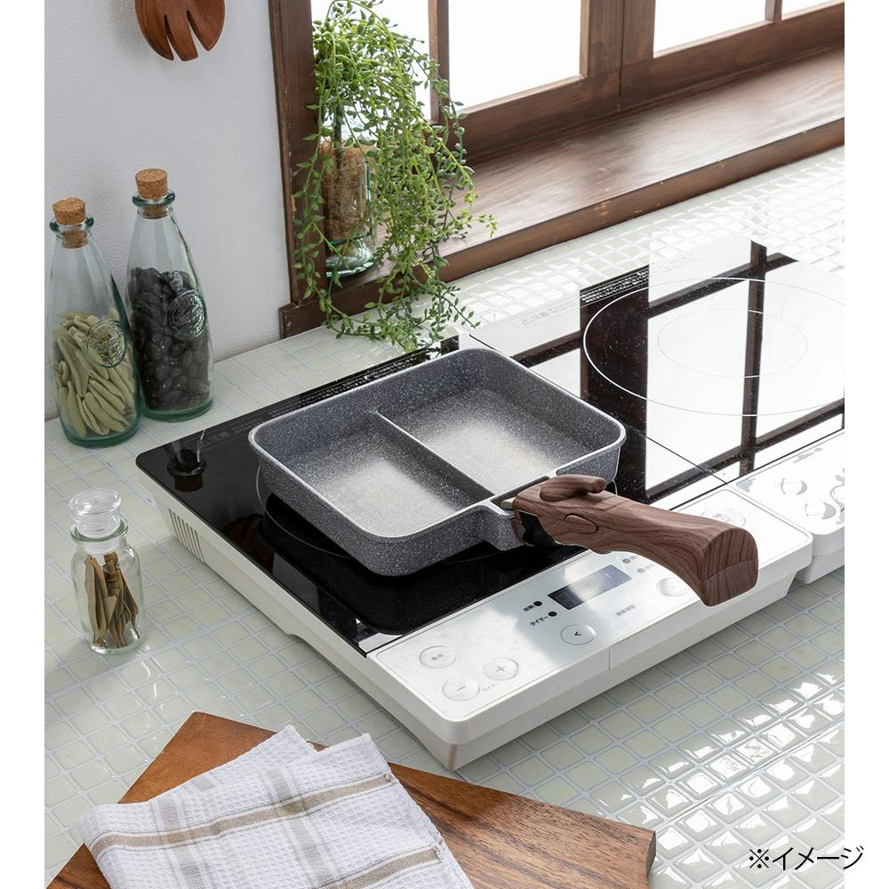 取っ手が外せるストーンマーブル仕切フライパン