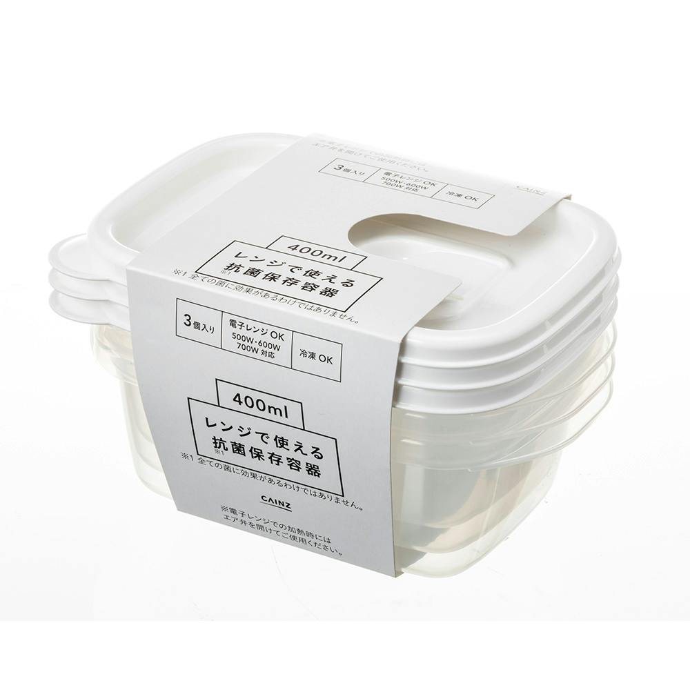 レンジで使える抗菌保存容器 400ml 3個入
