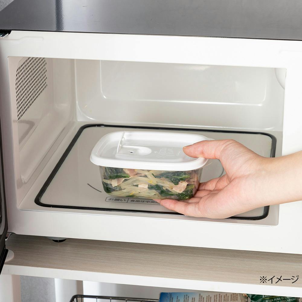 エア弁を開けるだけで蓋をしたままレンジ加熱ができ、抗菌剤配合で清潔に使用できます。