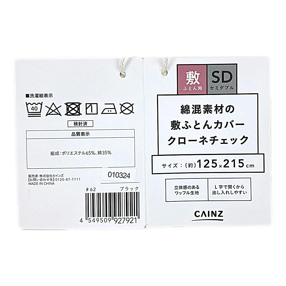 綿混素材の敷ふとんカバー クローネチェック セミダブル