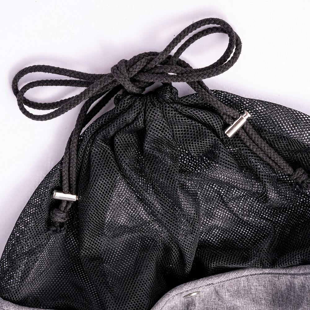 肩に負担が少ない幅広タイプ、飛び出し防止ネット付き