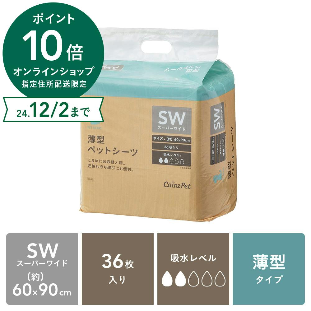 パープル薄型ペットシーツ スーパーワイド 36枚 約60×90cm 中型犬約1~2回分 高分子吸収剤配合で表面さらさら
