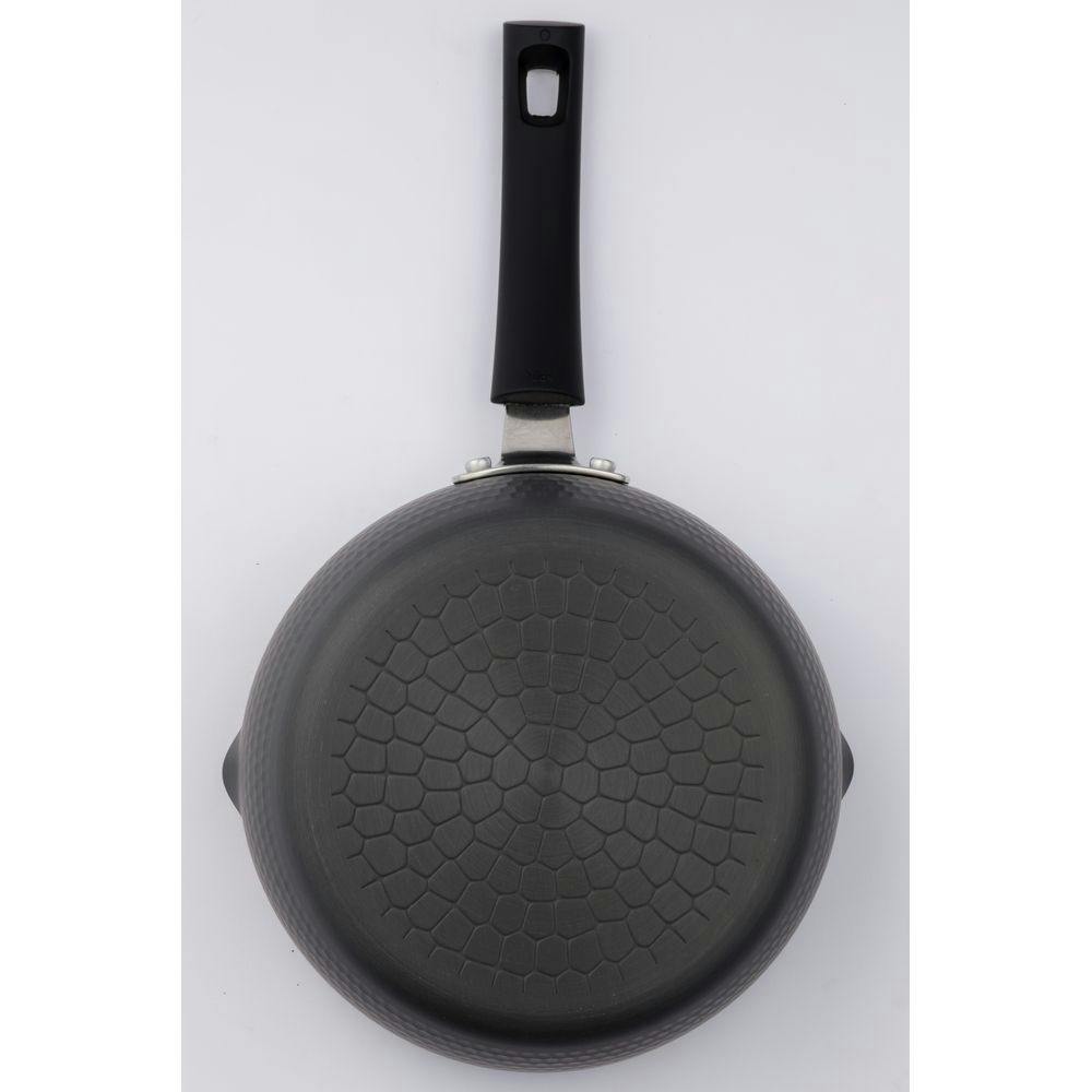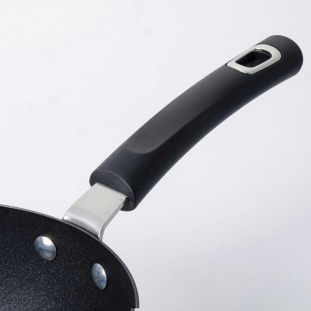 硬質アルマイト加工で焦げ付きにくさ長持ち。内面フッ素樹脂加工で汚れにくい。