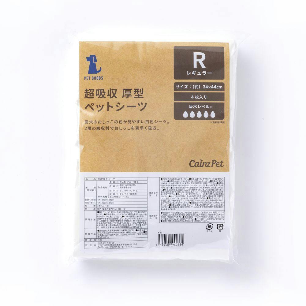 カインズ 超吸収厚型ペットシーツ お試し レギュラー 4枚 約34×44cm 小型犬約3~4回分 2層の吸収材ですばやく吸収