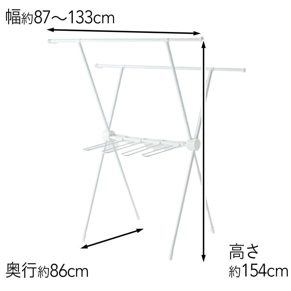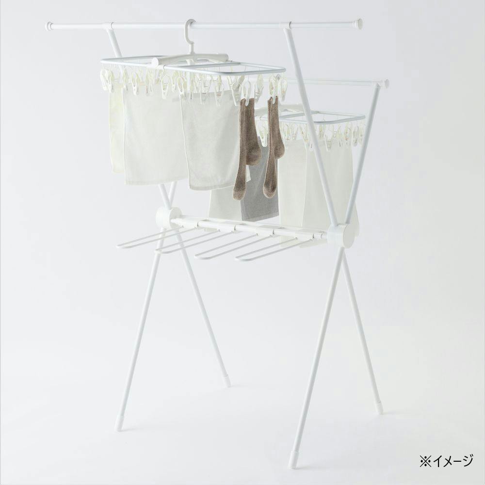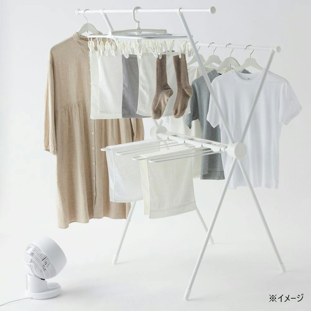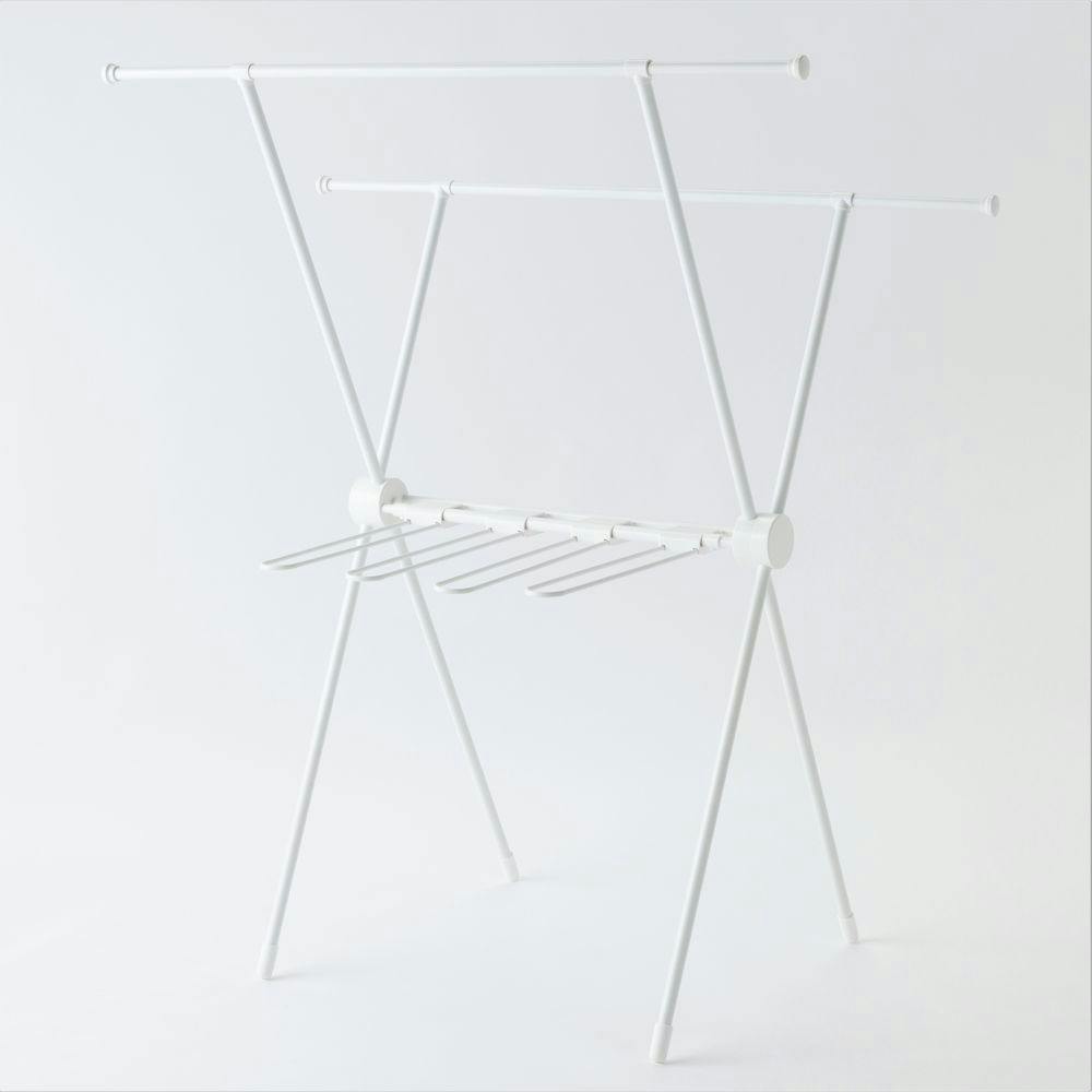 ロング丈も掛けられる乾きやすいX型室内物干し ホワイト