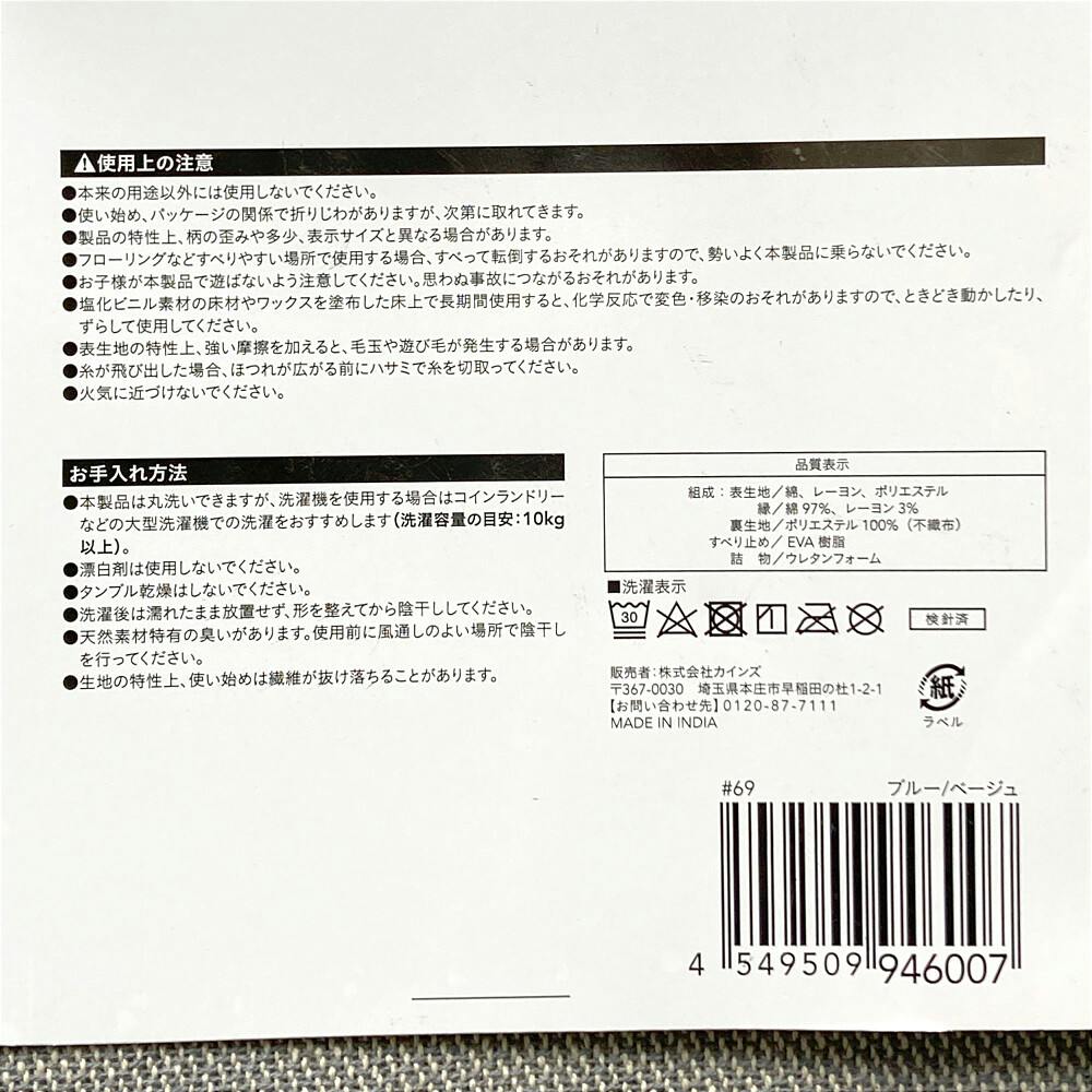 洗える、ウレタン3mmのクッション性、インド綿の風合い