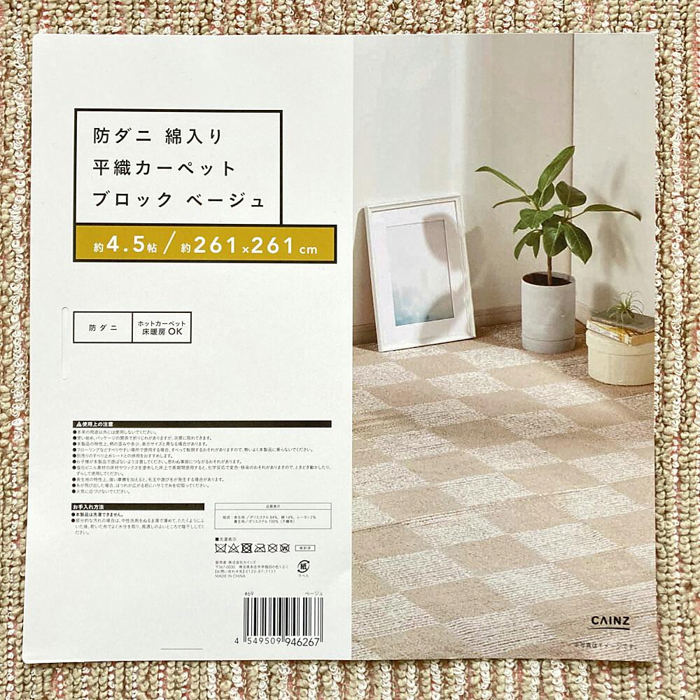 防ダニ 綿入り 平織カーペット ブロックベージュ 4.5畳