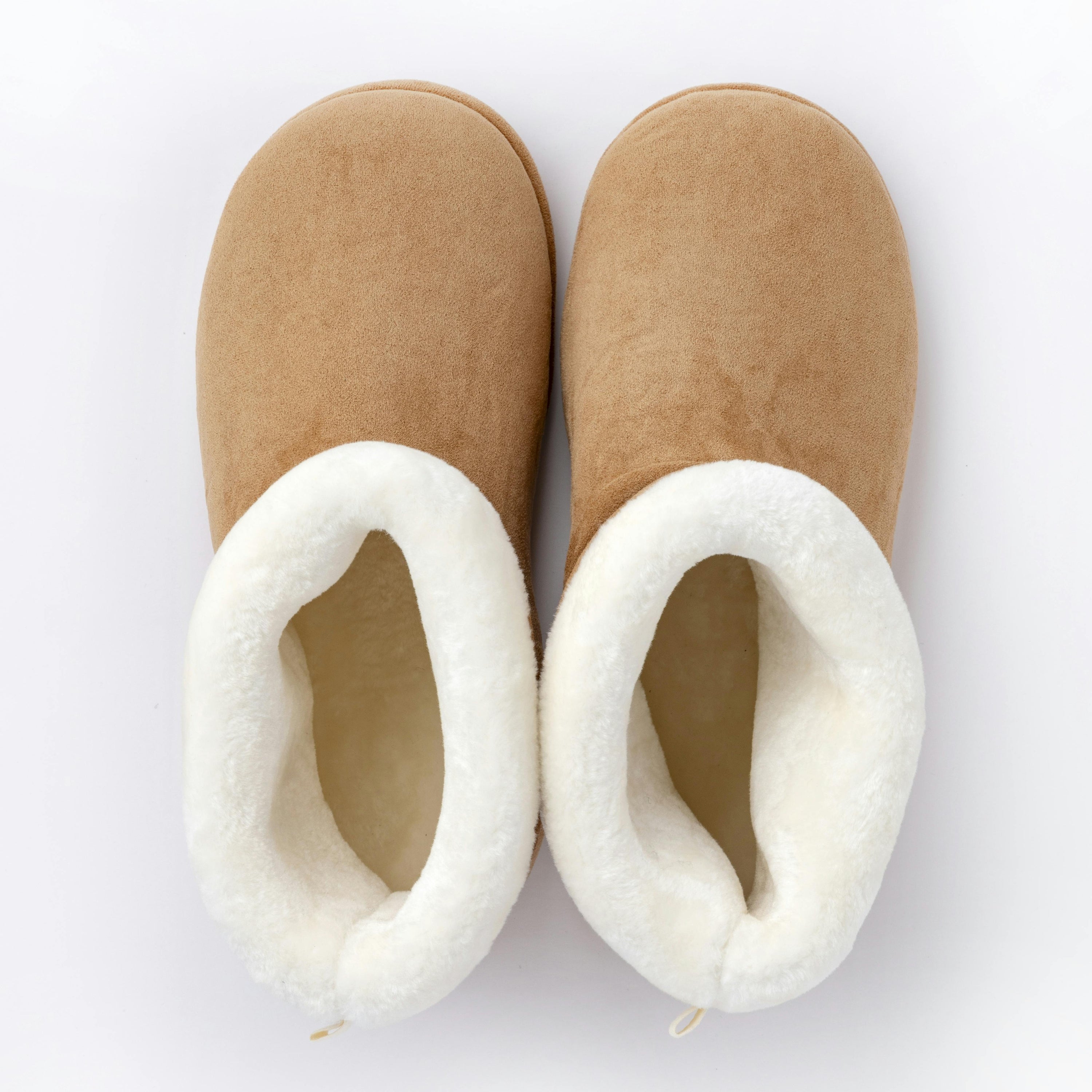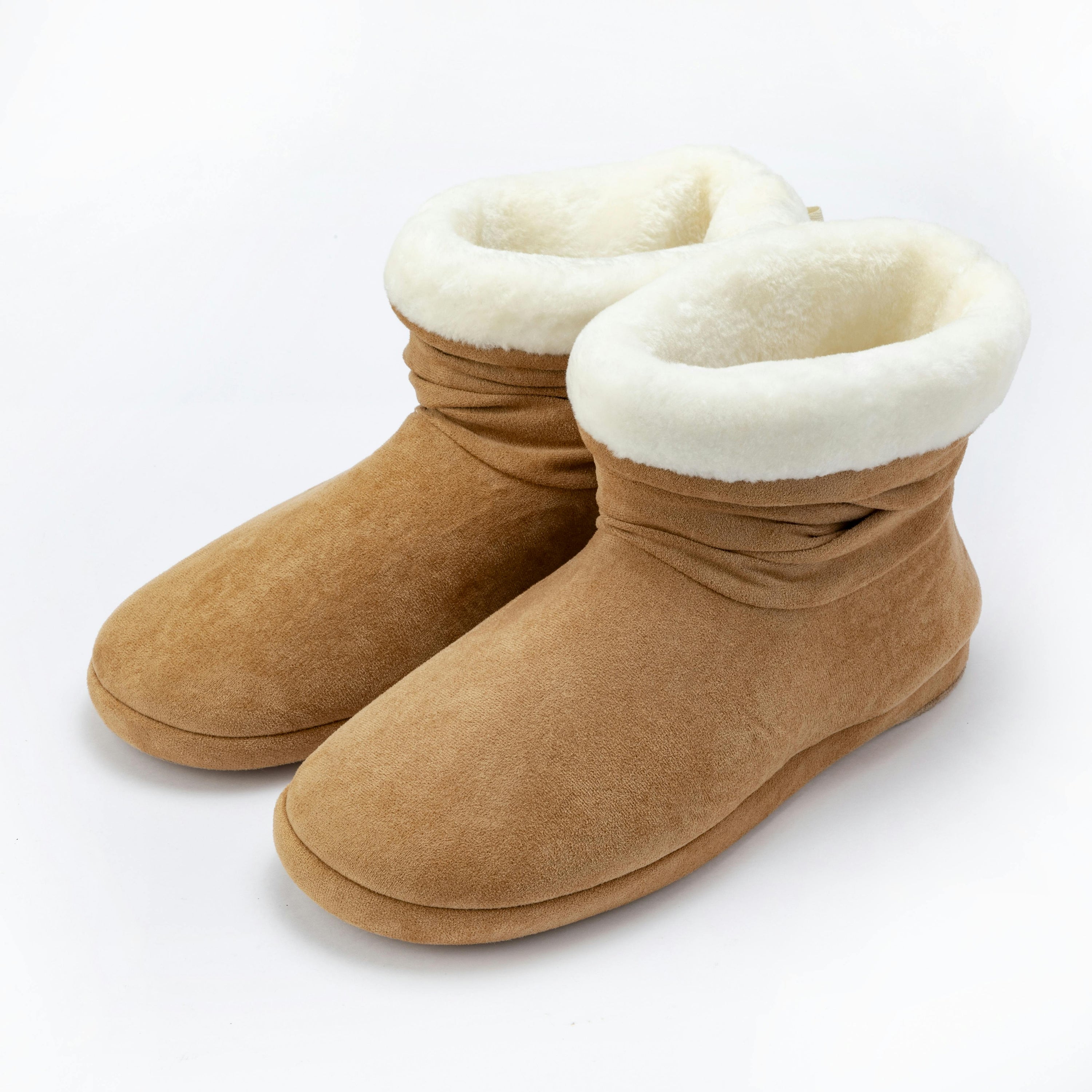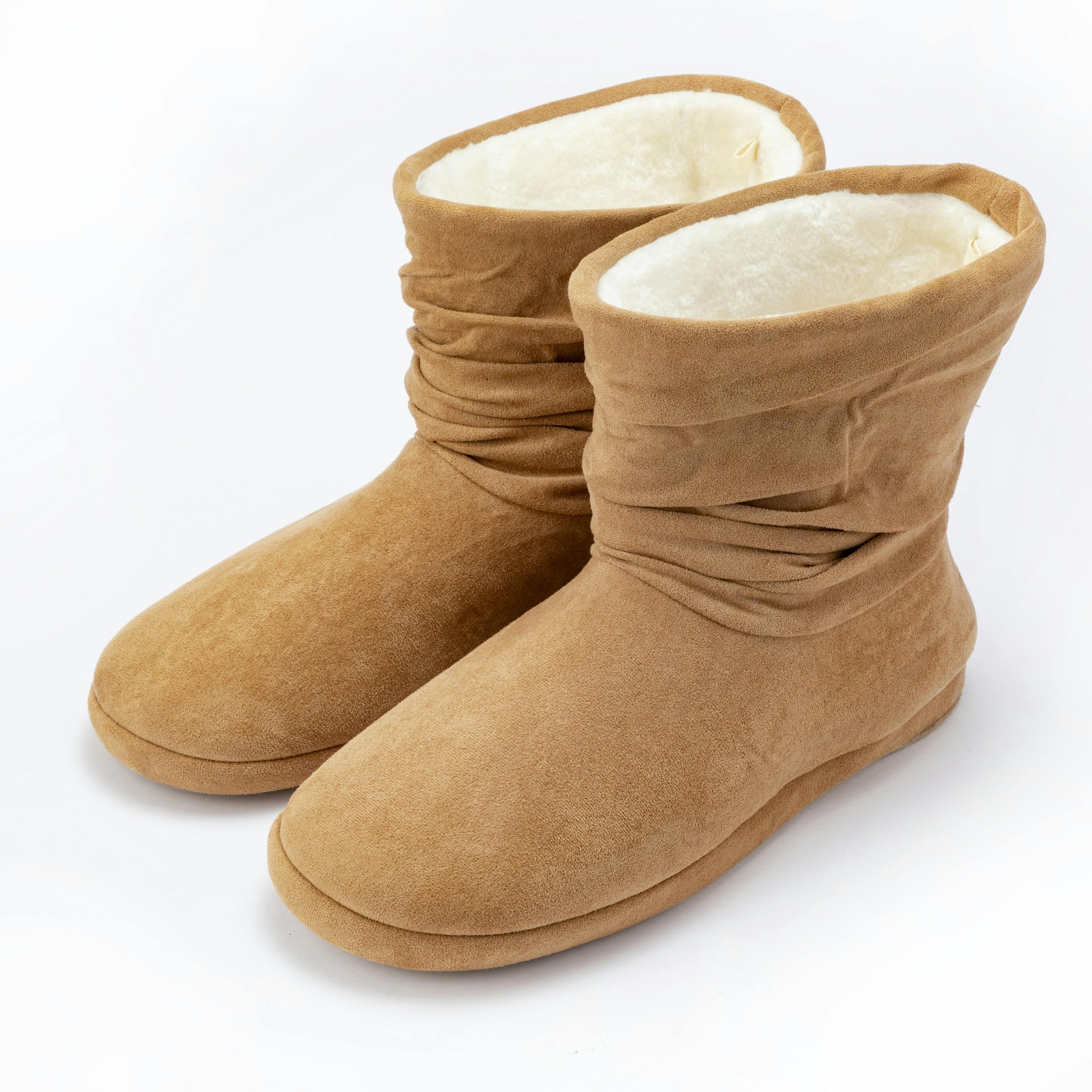 足首が毛布にくるまれているようなブーツスリッパ ベージュ LL