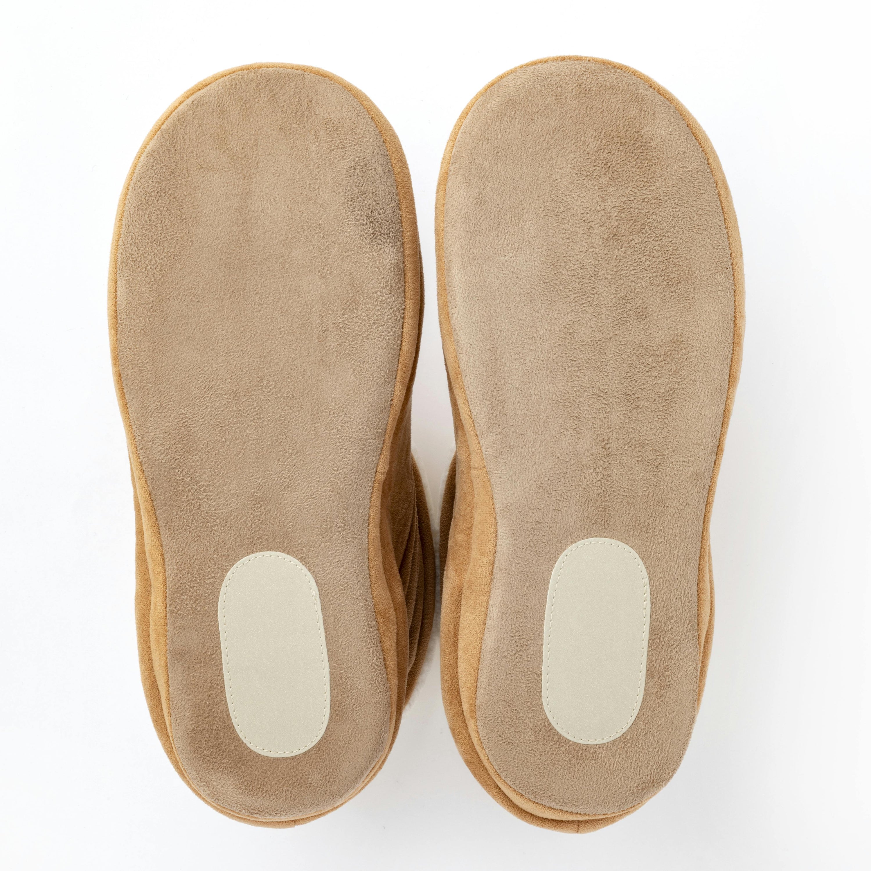 スリッパの内側にMIZUKUMO毛布と同じ生地を使用しています。なめらか肌触りで暖かい