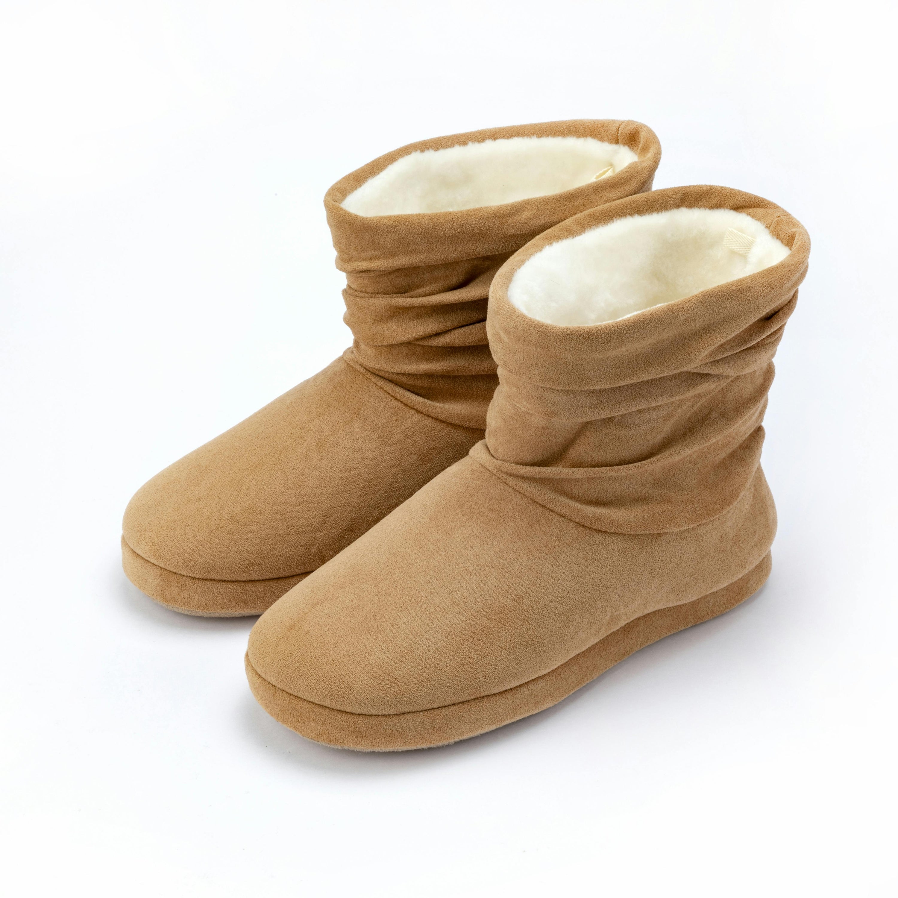 足首が毛布にくるまれているようなブーツスリッパ ベージュ M