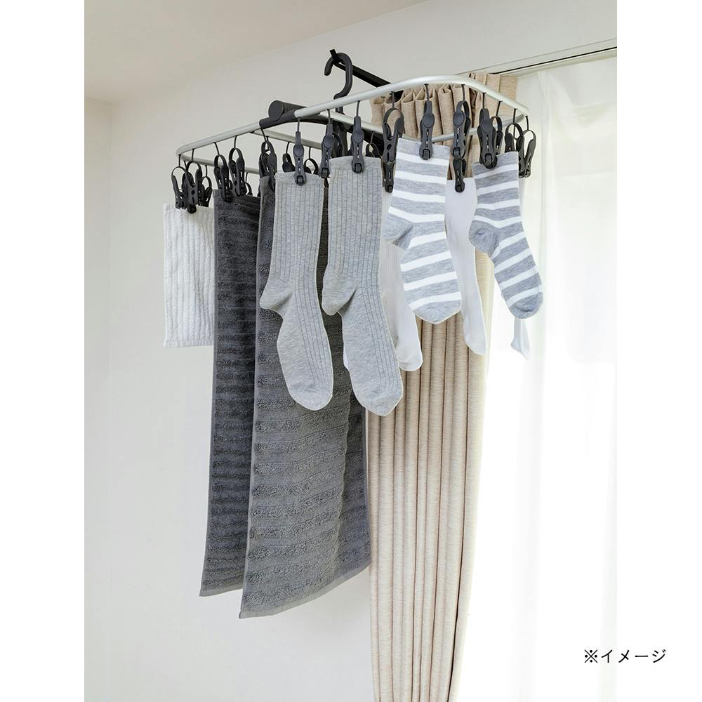 ●カーテンレールにセットするだけ。穴あけ不要で簡単取付け。●カーテンレールを利用して、不足しがちな物干しスペースに。●取付けたままでも、カーテンの開け閉めができる。