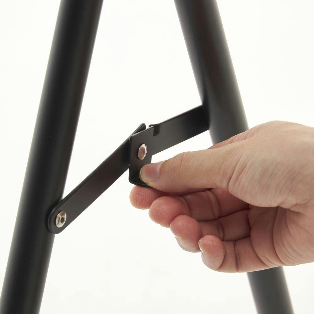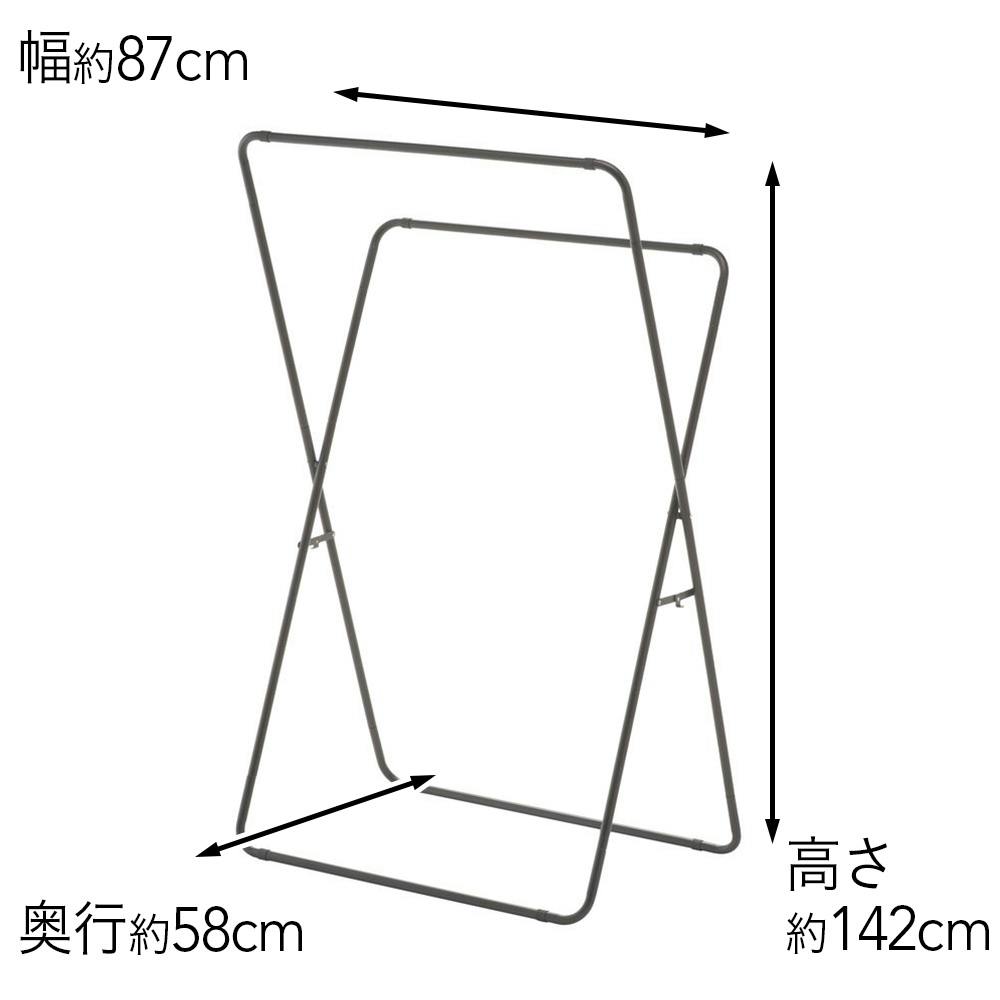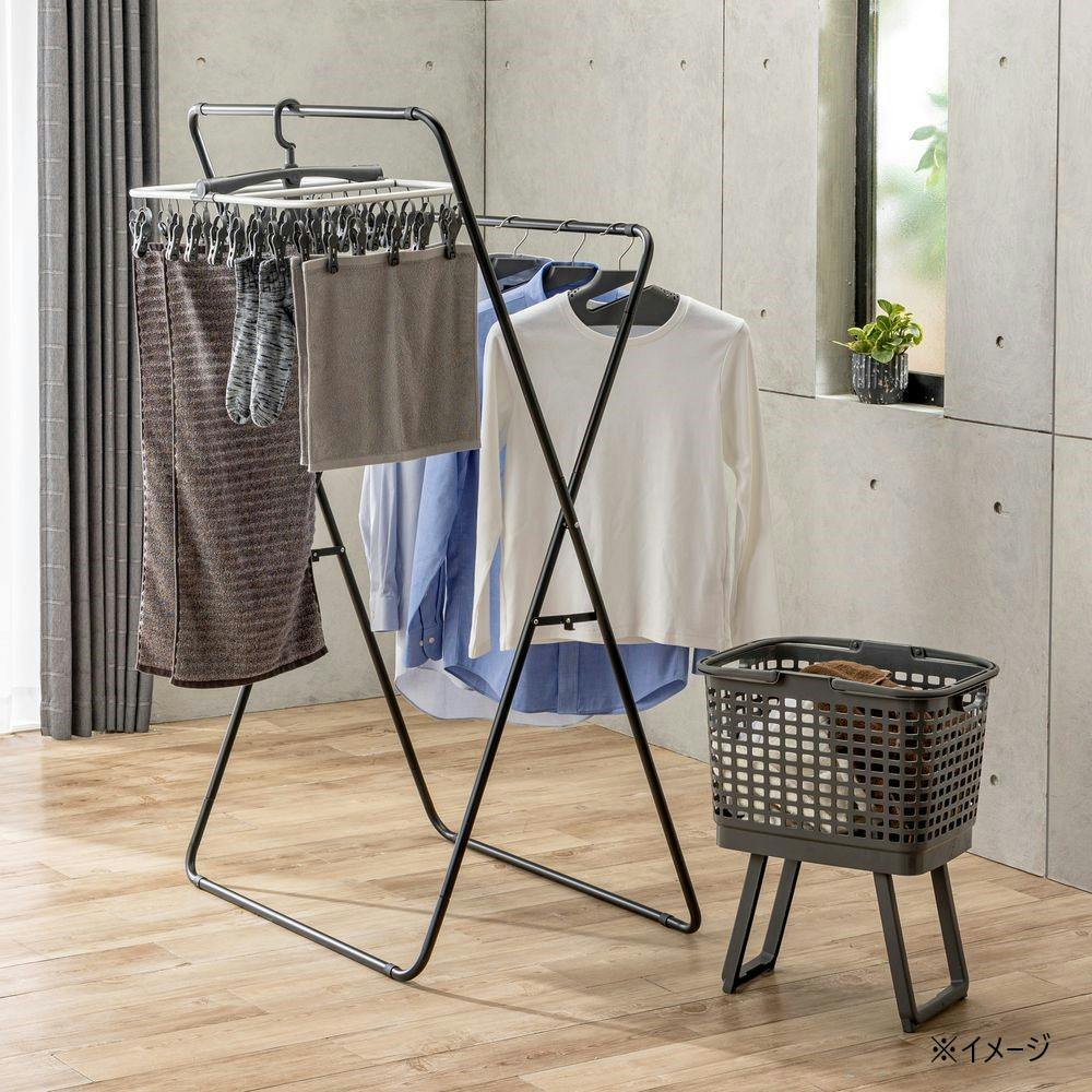 ●高さ違いのハンガーバー2段構造で、奥の洗濯物まで風が届きやすい。●両サイドのレバーの上げ下げで開きやすく、たたみやすい。収納時厚さ約9cm。●上部:すべり落ち防止ストッパー付き、下部:すべり止め付き。