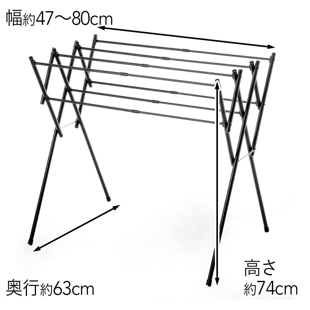 ●たためるので、収納しやすい。収納時:厚さ約10cm。●洗濯物の量に合わせて長さが調整できる。横幅約80cm。●上段、下段によって省スペースに干せる。●大判バスタオル約4枚、フェスタオル約6枚分が同時に干せる。