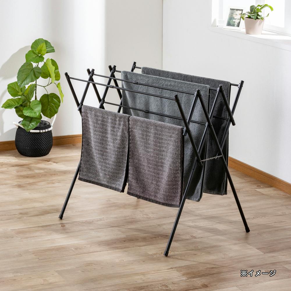 バスタオルも掛けられる伸縮式タオルハンガー ブラック
