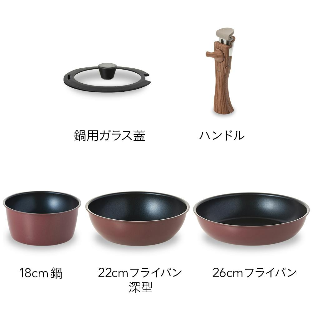 取っ手が外せる軽量フライパン&鍋 5点セット