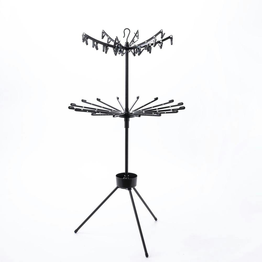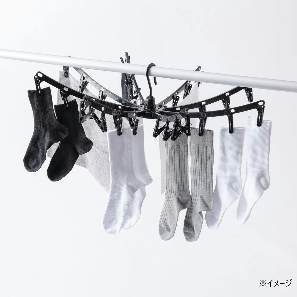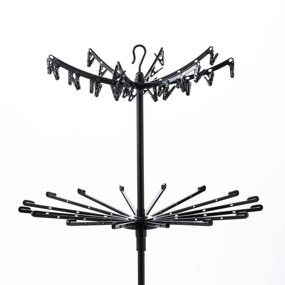 ・上部のピンチ32個、下部のタオルハンガー16本で小物やタオルを同時に干せる。取外しても使える。・上下のハンガーが回転できるので洗濯物を干しやすい。風をあてれば回転するので、乾きやすい。・洗濯物の量に合わせて使わないハンガーを折りたためば、さらに省スペース。収納時もコンパクト。